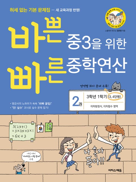 대치동에서 소문난 명강사인 저자의 노하우가 담긴 책! 선생님 도움 없이 혼자 풀 수 있는 3학년 1학기 중학 수학 책, ‘바쁜 중3을 위한 빠른 중학연산’(이하 ‘바빠 중학연산’)의 2015 개정 교육과정 반영 개정판이 나왔다.