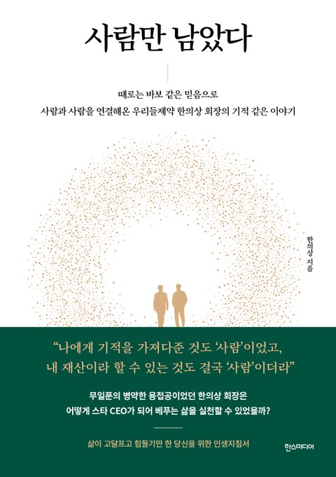 우리들제약(주)의 한의상 회장이 자신의 이야기를 담은 저서를 출간했다. 『사람만 남았다』는 뜨거운 열정과 희망으로 자신의 길을 우직하게 걸어온 한의상 회장의 경영 에세이다. 정열적인 사업가이자, 위기 상황에서의 문제 해결 능력이 탁월해 ‘해결사’로도 불리는 한 회장은 젊은 시절부터 다양한 직업을 경험하며 수많은 시행착오와 시련 속에서 돈으로 살 수 없는 귀중한 인생의 지혜를 얻었다. 그는 어떤 재산보다도 값진 것으로 ‘사람’을 내세운다. ‘사람을 중시하라’는 경영철학으로 사람과 사람을 연결하며, 새로운 비즈니스 기회를 끊임없이 만들어왔던 그의 이야기를 통해 독자들은 황금 같은 인사이트를 배울 수 있을 것이다.