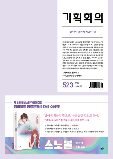 <기획회의> 이번호 이슈는 ‘2020 출판계 키워드 30’이다. 2020년 출판계에서 중요했던 키워드 30개를 선정했는데, 그 가운데 올해를 대표하는 최고의 화두로 ‘도서정가제’를 꼽았다. 30개의 키워드를 살펴보며 변화무쌍했던 올해를 정리하고, 한결 차분해진 마음으로 새롭게 2021년을 맞이할 마음의 준비를 해본다.