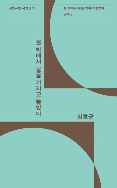 걷는사람 시인선의 29번째 작품으로 김호균 시인의 『물 밖에서 물을 가지고 놀았다』가 출간되었다. 1994년 「세숫대야論」으로 세계일보 신춘문예에 당선된 이후 세상 아래에 자리한 것들에 구명하며 시작(詩作)활동을 지속해 온 시인이 26년 만에 펴내는 첫 시집이다. 오래 묵힌 작품인 만큼 한 편 한 편이 가지는 발화는 무거운 힘을 지니고 있다.
