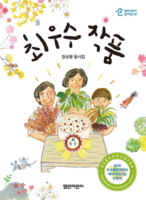 열린어린이 동시집은 이 시대를 살아가는 어린이들의 삶과 함께하며 따뜻하고 너른 눈으로 어린이들의 삶과 꿈을 담습니다. 성장하는 어린이들의 내면을 껴안고 어린이들의 넘치는 상상력을 북돋우는 어린이문학으로서 동시들을 담으려 합니다. 우리의 마음을 껴안고 삶을 껴안는 동시집이 되기를 바랍니다. 어린이들이 즐거이 감상하는 동시집, 시문학으로 시를 오롯이 감상할 수 있도록 이끄는 동시집, 시 감상의 길을 열어 주는 동시집이 되기를 바랍니다. 『최우수 작품』은 농촌 정서를 바탕으로 자연의 아름다움, 함께 사는 따스함, 어디든 짊어지고 살아야 할 삶의 이치 등을 동시에 담고 있습니다.