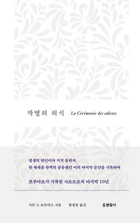 두 사람은 평생 서로의 첫 독자이자 편집자 역할을 했고, 사르트르는 보부아르를 자기 책의 검열관, 인쇄허가자라고 불렀다. 노년의 사르트르가 시력을 잃자 보부아르는 그에게 매일 책을 읽어주면서 눈이 되어준다. 사르트르가 죽고 난 후 세상에 나온 이 책 『작별의 의식』이 사르트르가 보지 못한 보부아르의 유일한 저작인 셈이다. 1982년 이 책이 처음 국내에 소개되었으나 당시 반공 이데올로기가 첨예하던 상황에서 검열 때문이었는지 삭제된 부분들이 있었고, 현지 답사가 원활하지 않았던 시기여서 고유명사들이 불분명한 경우들이 있었다. 이번에 소설가 함정임의 번역으로 다시 40년 만에 재출간하면서 빠진 부분을 다시 채워 넣고, 사르트르와 보부아르의 행적을 꼼꼼하게 보완해서 두 사람이 살았던 당시 사회를 더욱 현실감 있게 보여준다.