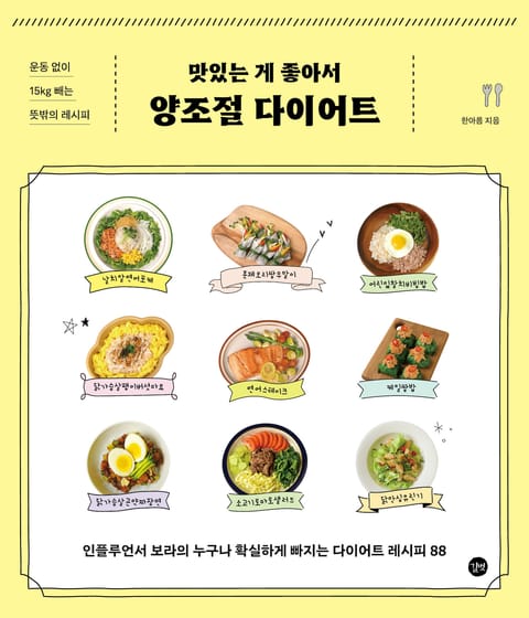 매일 습관만 바꿔도 15kg이 빠진다. 고기도 탄수화물도 디저트도 포기할 수 없는, 맛있는 게 너무 좋은 다이어터들에게 딱 맞는 양조절 다이어트와 레시피를 소개한다. 꾸준히 찐 살을 급하게 뺀다는 것 자체가 잘못된 생각이다. 꾸준히 찐 살은 천천히 빼줘야 한다. 그래야 다시 찌지 않는다. 저자가 인스타를 통해 1년여간 공개한 다이어트 레시피와 일기는 절대 실패 없는 다이어트의 정석과도 같다. 살이 찌지 않는 몸으로 바꿔주는 ‘양조절 다이어트’를 통해 저자는 15kg을 감량하고 이제는 3만6천명의 팔로워와 다양한 다이어트 레시피와 정보를 공유하고 있다. 무리한 식단 조절과 운동은 하지 않는다. 딱 내가 할 수 있는 만큼의 다이어트를 하는 것! 누구나 확실하게 변화시키는 양조절 다이어트 그 비법을 이 책에 소개한다.
