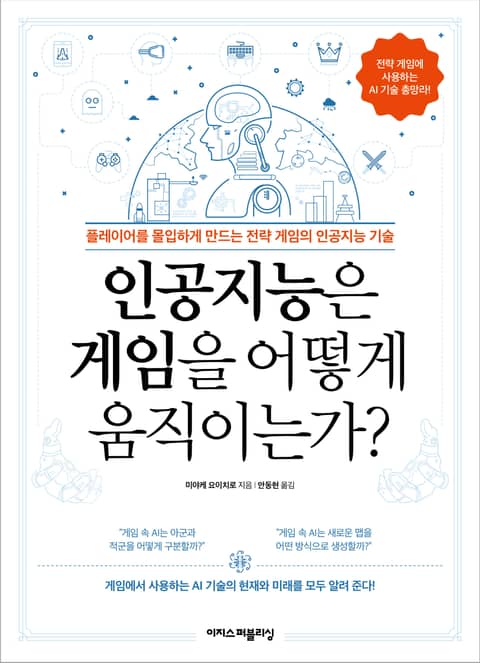 이 책은 크게 전략 게임 속 AI가 무엇인지, 전략 게임에 사용한 AI 기술은 무엇인지, 앞으로 전략 게임 속 AI 기술이 어떻게 발전하고 다른 분야에 어떻게 활용될 것인지 등 게임 속 AI의 과거, 현재, 미래를 설명합니다. 심층 학습의 등장과 인공지능의 붐으로 더욱 발전하게 된 게임 AI의 현재 모습을 알고, 앞으로의 게임 산업과 인공지능의 미래를 준비하는 데 도움이 될 것입니다.