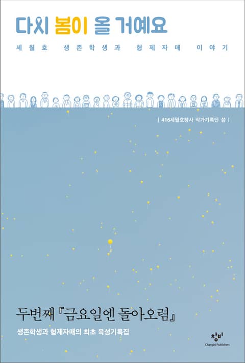 416세월호참사 작가기록단(이하 작가단)은 서울과 안산을 수십차례 오가며 세월호 가족과 형제자매, 단원고 생존학생을 만나 그들과의 인터뷰를 수백분 분량의 녹음파일로 담아냈다. 이 책에 실린 스물여섯편의 인터뷰는 참사 당일을 생생하게 기억하고 있는 ‘사건 당사자’의 구술이자 진상규명활동에서 조연으로만 등장해온 ‘어린 유가족’의 또다른 선언이다. 개인의 살아 있는 증언으로서도 소중하지만, 생생한 육성과 날것의 감정을 오롯이 담아냈다는 점에서 『금요일엔 돌아오렴』을 잇는 “품격을 갖춘 집체적 르포르타주”이자 기록문학의 또 하나의 성취다.