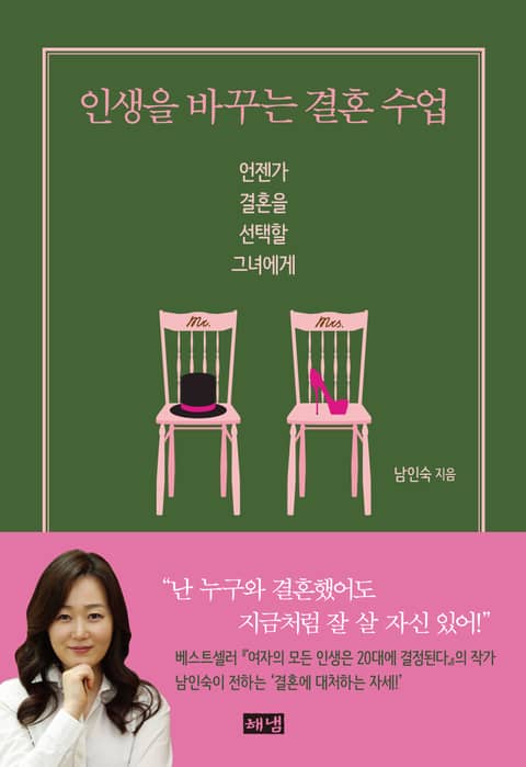 결혼 20년차 선배이자 『여자의 모든 인생은 20대에 결정된다』, 『남자의 모든 인생은 20대에 결정된다』 등으로 아시아 380만 독자들의 사랑을 받아온 2030 여성들의 멘토 남인숙 작가는 『인생을 바꾸는 결혼 수업』을 통해 ‘결혼 생활의 질’이 곧 ‘삶의 질’로 연결된다고 이야기한다. 결혼을 하지 않아도 행복하게 잘 살 수 있지만, 이미 결혼을 했다면 신입사원에 버금가는 노력 없이는 결코 저절로 행복이 찾아오지 않기 때문이다. 작가는 결혼 후에 행복하게 잘 사는 여자들의 공통점을 찾아 알려주기 위해 직?간접적으로 취재한 기혼자들의 사례를 바탕으로 결혼 생활의 실제를 낱낱이 정리했다. 2009년 『여자의 인생은 결혼으로 완성된다』라는 제목으로 첫 출간한 이후 2012년 1차 개정을 거치고, 이번에 다시 한 번 원고를 수정?보완했는데, 특히 최근 변화된 결혼관과 경제관을 반영해 가정경제를 관리하는 방법에 대해서도 새롭게 추가했다.