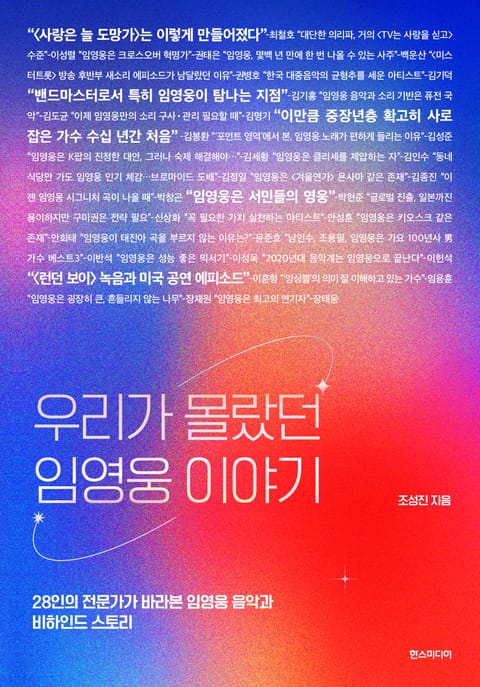 『우리가 몰랐던 임영웅 이야기』는 28인의 전문가 인터뷰로 가수 임영웅을 집중 탐색한 도서다. 저자 조성진은 《핫뮤직》 편집장, ‘벅스뮤직’ 미디어/콘텐츠 팀장, ‘서울재즈아카데미(SJA)’ 학과장 등을 지내며 1,000여 장이 넘는 음반을 해설해온 대한민국 대표 음악평론가다. 또한 현직 언론인으로, ‘임영웅 현상’을 국내 최초로 다뤄 심도 깊은 음악 평론을 선보인 바 있다.
