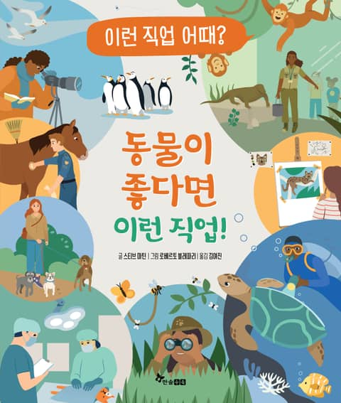 [이런 직업 어때?] 시리즈는 동물, 스포츠와 같이 아이들이 좋아하는 주제와 관련된 다양한 직업의 세계를 재미있고 깊이 있게 소개하는 진로·직업 그림책 시리즈입니다. 시리즈 첫 번째 책인 『동물이 좋다면 이런 직업!』에서는 동물과 일하는 직업인들의 하루를 함께 경험해요. 수의사, 야생동물 보호 활동가처럼 아픈 동물을 치료하고 돌보는 직업부터 사육사, 펫시터, 반려견 미용사와 같이 동물을 보살피고 꾸며 주는 직업, 해양생물학자, 동물학자, 곤충학자와 같이 동물을 연구하는 직업, 그리고 안내견 훈련사, 경찰견 핸들러, 반려동물 사진작가, 반려동물 입양 상담사, 야생동물 보호구역 관리자 등 새롭고 흥미로운 직업까지, 우리가 몰랐던 직업의 세계를 속속들이 들여다볼 수 있어요. 직업마다 어떤 일을 하는지, 그 일에서 가장 중요한 게 무엇이고, 어떤 지식과 기술이 필요하지, 그 일의 장점과 단점도 알 수 있어요.