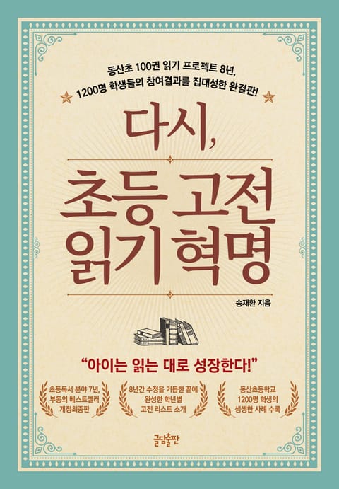 “우리아이 평생 성장저력을 키워 주는 독서법, 다시 고전읽기를 시작하라” 초등독서 분야 7년, 부동의 베스트셀러가 새롭게 돌아왔다! “아이는 읽는 대로 성장한다!” 국내 최초 전 학년 고전읽기로 전국 학부모와 교사들에게 엄청난 반향을 일으켰던 동산초 100권 고전읽기 프로젝트가 벌써 8년째를 맞이했다. 이를 체험한 학생 수만 어느덧 1,200명에 이른다. 학생들은 매년 크고 작은 변화와 성공을 경험했다. 이 책은 이러한 1,200명 학생들의 참여결과를 바탕으로 지금 이 시대 고전읽기의 의미와 중요성에 대해 다시 한 번 일깨워 준다. 그리고 『초등 고전읽기 혁명』에서는 담지 못한, 8년 동안 수정을 거듭하여 완성한 최종 고전리스트와 고전읽기법이 집대성되어 있다. 1학년부터 6학년까지 고전읽기를 진행해 오며 발생한 문제들을 보완하여 완성한 것들로써, 누구나 즐겁게 고전을 읽고 효과를 볼 수 있도록 돕는다. 최근 4차 산업혁명을 시작으로, 스팀 교육, 초·중등학교 디지털 교과서 적용, 객관식 문제 폐지 등 시대가 달라지고 교육 과정이 바뀌고 있다. 이런 시대에 고전읽기라니, 시대착오적인 교육법 같다. 그러나 초등 공부법 전문가이자 고전읽기 전도사인 송재환 교사는 이럴 때일수록 부모가 집중해야 하는 건, 기본이라고 말한다. 기본이 단단하다면 어떤 상황에서도 흔들리지 않고 자신의 기량을 펼쳐 나갈 수 있다. 그리고 그 기본을 단단히 쌓아 주는 것이 고전읽기임을 학생들의 사례를 바탕으로 이야기해 준다. 꿈이 없던 아이들이 꿈을 갖기 시작하고, 피로와 학업에 대한 스트레스로 힘없던 아이들의 눈빛이 살아나기 시작했으며, 자기밖에 몰랐던 아이들이 다른 친구를 배려하기 시작했다. 이러한 아이들의 사례를 생생하게 들려주며 송재환 교사는 “고전만큼 아이를 변화시키는 것은 보지 못했다”고 고백한다.