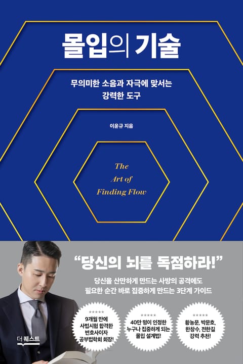 이 책의 내용이 뻔한내용이라고 하는 사람들을 이해할 수 없다. 이윤규 변호사가 유튜브에 나와서 말한 내용들을 보고 무조건 구매를 해야겠다고 생각했다. SNS와 도파민이 넘쳐나는시대에, 엄청나게 많은 사람들이 몰입에 대해 심각하게 많은 고민을 가지고 있다. 이윤규 변호사는 이 심각한 문제들에 대해 실질적이고, 아주 구체적인 방안을 제시하고 있다. 본인이 직접 몸으로 체화하고 증명한 것들을 체계화 시켰다는 점에서 매우 유용하다. 목차를 보아도, 몰입을 하기 위해 많이 고민했던 사람들이 봉착했던 난관을 제시했으며, 구체적인 혜안을 제시한다는 것을 알 수 있다. 예를 들어 집중을 못하는 것은 '뇌가 끌려하지 않기 때문'이라는 접근과, '그를 위한 설계'라는 접근은 매우 큰 실마리를 준다. 또한 '불안'이 몰입의 방해요소라는 점 또한 무언가를 집중하려고 끊임없이 자신과 싸웠던 사람만이 알 수 있는 포인트이다. 현 시대에 몰입할 수 없다면, 신분격차는 심각하게 나뉠 것이다. 자신을 몰입시키는 기술을 알고있는 사람과, 모르는 사람의 격차는 학창시절부터 인생 전체에 걸쳐 심각한 인생의 수준격차를 야기할 것이다. 특히 인터넷과 SNS의 보급이후 이에 대한 심각성은 더욱 더 커졌다. 모든 학생과, 직장인 및 직업인이 알아야 할 기술이며, 트레이닝 해야 할 기술이다. 이윤규 변호사가 제시하는 뻔하지만, 중요한 몰입의 기술은 미라클 모닝 이런것 보다 훨씬 더 중요하다. 이윤규 변호사에게 진심으로 감사함을 표한다.