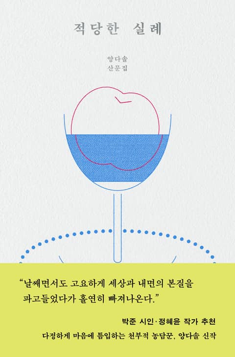 양다솔은 어떤 일도 관성적으로 하지 않는다. 북토크에서는 독자들에게 감사함을 전하기 위해 노래를 부르고, 글방 마감에 늦은 사람에게는 ‘성대모사’라는 유쾌한 벌칙을 내린다. ‘등단도 안 했고 책도 못 냈고 상도 못 받은 그냥 양다솔’이라는 이름으로 연재 구독자를 모집하고, 스스로 만든 무대 위에서 생애 가장 치열한 한 달을 보낸다. 그렇게 성큼 다가와 의뭉스럽게 웃는 양다솔에게, 우리는 마주 웃는 것밖엔 도리가 없다. 잠시 모두가 같은 표정을 짓는 순간에 새로운 이야기가 피어난다. 이 책은 양다솔이 무릅쓴 실례로부터 뻗어 나간 다채로운 이야기들을 골라 모은 것이다.