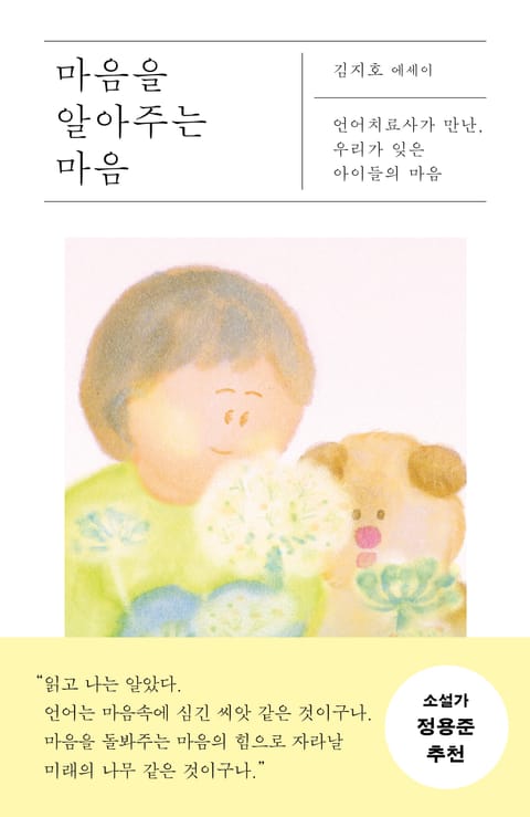 20여 년간 언어장애를 겪는 아이들을 만나온 언어치료사 김지호의 에세이 《마음을 알아주는 마음》이 은행나무출판사에서 출간되었다. 이 책은 완벽한 말소리를 내지 못하는 아이들의 곁을 지키며 알게 된, 말이 되지 못한 마음들을 담고 있다. 부모님이 실망할까 두려워 말을 더듬는 아이, 언제나 ‘읍바(아빠)’라고만 말하는 아이, ‘안 돼’라는 말이 두려워 소리를 지르고 마는 아이. 전하고 싶은 속마음은 저마다 다르지만, 아이들은 하나같이 ‘사랑’을 전하려 한다. 나를 보살피는 사람에게, 즐겁게 놀아주는 사람에게 사랑을 표현하고 싶어 한다. 아이들은 행복을 그리는 말, 사랑에 답하는 말을 먼저 배우고 오래 기억한다. 하지만 제 나이에 맞는 어휘를 쓰는지, 올바른 발음을 내는지에만 관심을 두는 어른들은 말소리에 담긴 마음을 듣지 못한다.