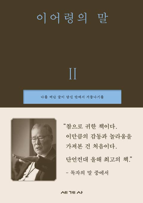 우리 시대의 대표 지성, 이어령의 저작 수백 권에서 ‘말의 정수’라 할 만한 글을 엄선한 『이어령의 말』 2권이 출간됐다. 2권에는 1권에 미처 담지 못한 미공개 강연을 비롯해 새로운 명문들이 담겼다. 생전 그는 “한 권을 통해 후대의 독자들이 내가 평생 해온 지적 탐험을 쉽게 이해하면 좋겠다”며, 자신이 떠난 세상에서 길을 잃고 헤매고 있을 후대에게 등불과 같은 책을 남기고자 했다. 『이어령의 말』은 그런 그의 뜻에 따라 수년간 기획과 편집을 거쳐 완성된 이어령의 유작이자 지적 유산이다.