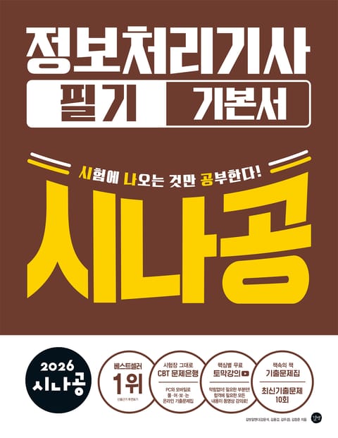 A-Z까지 기본 탄탄, 〈2026 시나공 정보처리기사 필기 기본서〉 2026 시나공 정보처리기사 필기 기본서는 기출문제를 면밀히 분석함으로써 출제 경향을 완벽하게 반영한 책으로, 매년 개정을 통해 최신 기출문제를 수록하고 있습니다. NCS 학습 모듈을 가이드 삼아 이론에 대한 자세한 설명과 충분한 예제를 더한 후, 기초가 없는 수험생도 이해할 수 있도록 최대한 쉽게 설명했습니다. ■ 〈시나공〉에서만 만날 수 있는 합격 비법 - 꼼꼼하고 확실한 개념 정리: 철저한 분석으로 출제 개념을 구성하여 확실한 시험 대비가 가능합니다. - 이론+문제+요약의 3단 구성: 각 섹션과 장이 끝날 때마다 기출문제와 핵심요약을 배치해 필수 학습 이론을 완벽 흡수할 수 있도록 만들었습니다. - 상황별, 개인별 우선순위 학습: 시험에 출제된 비율에 따라 A, B, C, D 등급을 정해두어 학습 효율을 극대화할 수 있습니다. - 기출문제집 부록 제공: 총 10회 최신 기출문제를 제공합니다. - 저자 무료 강의 지원: 157섹션 733필드 중 730필드를 동영상 강의로 담았습니다. 유튜브와 홈페이지에서 저자 무료 강의를 들어보세요. - 꾸준히 업데이트되는 학습 자료: 시나공 홈페이지(sinagong.co.kr)에서 핵심요약집, 최신기출문제 등 시험에 필요한 자료를 확인할 수 있습니다