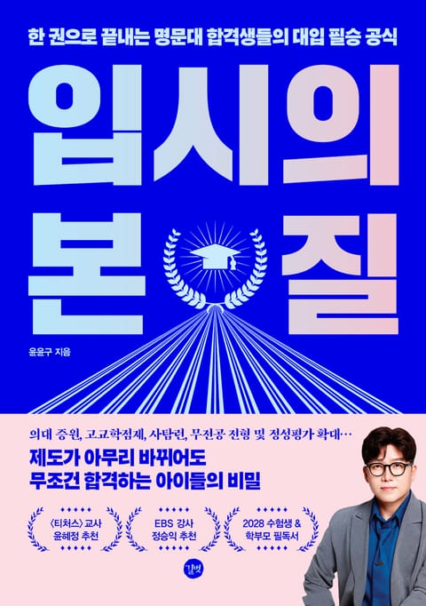 저자는 교육부 정책자문위원, EBS 대표 입시 강사로 활동하며 전국 입학사정관들을 교육하고 2025학년도 의학 계열 및 SKY 입결 8년 연속 상승이라는 성과를 만들어낸 입시 전문가이다. 이 책은 그의 오랜 현장 경험과 통찰을 바탕으로, 학생들이 단기적 성적 향상에 머무르지 않고 ‘공부의 본질’을 이해함으로써 진정한 성장과 성공을 이룰 수 있도록 돕는다. 책의 1부에서는 어떤 제도 변화에도 흔들리지 않는 교육·학습·입시의 본질을 다룬다. 이를 통해 내 아이의 학습 태도, 사고력, 자기주도성 등 ‘입시의 기초 체력’을 점검하고 아이 맞춤 대입 전략을 설계하는 데 필요한 힌트를 얻을 수 있다. 2부에서는 앞으로의 대입 방향성을 전망하며 정성평가 시대에 필요한 학생의 역량과 부모의 역할을 담았다. 부록의 2028학년도 대입 제도 개편안, 고교학점제, 논·서술형 평가 대비 전략까지, 이 책은 막막한 입시 터널 앞에서 갈피를 잡지 못하는 부모들에게 선명한 길잡이가 되어줄 것이다.