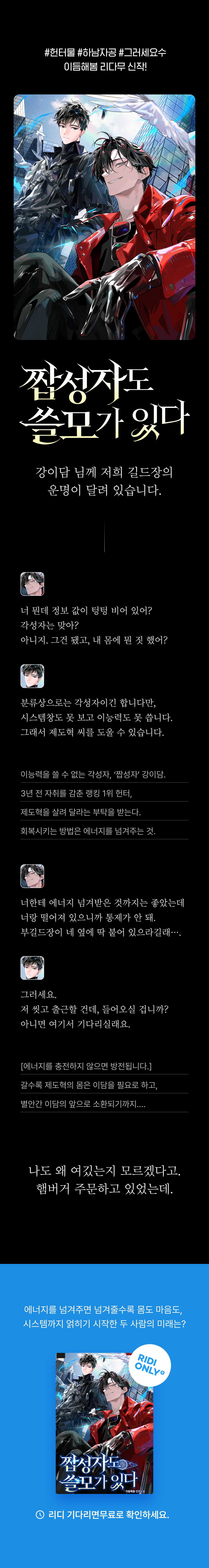 • 일단 최신화까지 다 읽긴 했는데 공이 무매력이라 족굼 아쉽고.. 길드 운영자에 s급인데 소속 길드원들이 너무 말도 안 되게 기어오르는 점이 좀 의아하네요 수 캐릭터는 좋아요 기본적으로 무덤덤하면서도 나름의 욕심과 의욕은 있는 점이나 공 죠랄에 흔들림 1도 없는 면이 매력 있어요 성적 접촉(키스라든지 목덜미 쭙쭙이라든지)이 있어도 그에 대한 L스러운 감상이 진짜 1도 없어서 걍 불미스러운 접촉에 어색해하는 남자1 같다는 점이 웃픔ㅋㅋ