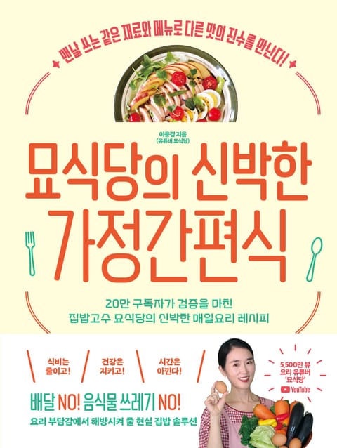 아무리 건강에 좋은 집밥이라도 매일 차려 먹기 어려운 현실을 누구보다 잘 알기에, 《묘식당의 신박한 가정간편식》을 준비했다. 10분 내외로 쉽게 완성할 수 있고, 건강하게 맛있으며, 식비 절약까지 가능한 레시피를 엄선했다. 집밥 차려 먹기 좋은 환경을 유지할 수 있는 살림팁까지 알차게 소개한다.