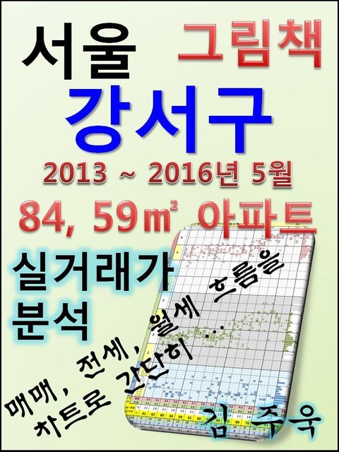 안녕하세요. 김주욱 입니다. 이 책은 그림책입니다. 아파트 가격에 대하여 누구나 쉽게 이해할 수 있도록, 그림으로 나타냈습니다. 복잡한 문장이 아닌 해당 아파트에 대한 가격 흐름을 그림으로 나타내어 누구나 쉽게 살펴 볼 수있고, 본인이 직접 판단할 수 있도록 만들었습니다. 해당 아파트에 대한 분석 의견은 수록하지 않았습니다. 타인의 재산에 대하여 평가를 한다는 것 자체가 큰 부담이 되어, 투자의견은 없다는 점 양해 바랍니다. 하지만, 이 책의 차트를 계속 보게되면, 어디를 공략해야 할지 쉽게 알 수 있을 것입니다. 아파트는 주거의 대상일 뿐 아니라 투자의 대상이기도 합니다. 여러분이 관심 있는 아파트의 가격 흐름을 살펴 보시고, 어떤 방향으로 접근해야할지 한번 생각해 보시기 바랍니다. 흔히 가격은 모든 것이 집결 된 종합 예술이라고 합니다. 요즘 아파트의 선정기준은 입지, 교육, 교통, 문화, 쇼핑 등 모든 것이 반영 되어 있습니다. 단 한권의 책으로 그 모든 것을 기술하기에는 내용이 너무 많고, 사실 그렇게 해봤자 정리가 잘되지 않습니다. 이에, 가격의 흐름을 통해서 어떤 방향으로 움직이는지, 앞으로 어떤 방향으로 전개될 것인지 생각해 보시기 바랍니다. 어려운 용어와 긴 문장으로 현상을 자세히 설명하는 것도 좋지만, 저는 단지 가격 흐름을 시각적으로 보여드리겠습니다. 아주 간단한 차트 한 장으로 특정 아파트의 분위기를 느껴 보시기 바랍니다. 이 한권의 책으로 많은 정보를 얻으시고, 각 구별로 계속 출간을 할 예정으로 관심있게 지켜봐 주시기 바랍니다. 1. 마곡엠밸리7단지_강서구 마곡동 2. 마곡엠밸리6단지_강서구 마곡동 3. 마곡엠밸리5단지_강서구 마곡동 4. 마곡엠벨리(14단지)_강서구 마곡동 5. 우장산힐스테이트_강서구 내발산동 6. 마곡엠벨리(15단지)_강서구 마곡동 7. 마곡엠밸리2단지_강서구 마곡동 8. 마곡엠밸리4단지_강서구 마곡동 9. 마곡엠밸리 1단지_강서구 마곡동 10. 우장산아이파크,이편한세상_강서구 화곡동 11. 강서힐스테이트_강서구 화곡동 12. 강서한강자이_강서구 가양동 13. 염창1차한화꿈에그린_강서구 염창동 14. 우장산롯데캐슬_강서구 화곡동 15. 마곡푸르지오_강서구 방화동 16. 롯데캐슬_강서구 염창동 17. 강변월드메르디앙_강서구 염창동 18. 등촌동아이파크_강서구 등촌동 19. 마곡수명산파크1단지_강서구 내발산동 20. 강변한솔솔파크_강서구 염창동 21. 강변힐스테이트_강서구 염창동 22. 마곡수명산파크2단지_강서구 내발산동 23. 한솔솔파크_강서구 마곡동 24. 화곡푸르지오_강서구 화곡동 25. 염창힐스테이트_강서구 염창동 26. 월드메르디앙_강서구 내발산동 27. 염창1차보람더하임_강서구 염창동 28. 강서쌍용예가_강서구 염창동 29. 삼정그린코아_강서구 염창동 30. 마곡수명산파크3단지_강서구 내발산동 31. 신안_강서구 마곡동 32. 마곡금호어울림_강서구 마곡동 33. 마곡수명산파크4단지_강서구 내발산동 34. 동부강서센트레빌3차(893-0)_강서구 방화동 35. 염창2차한화꿈에그린_강서구 염창동 36. 롯데2_강서구 내발산동 37. 가양강나루현대_강서구 가양동 38. 마곡수명산파크6단지_강서구 내발산동 39. 월드메르디앙_강서구 염창동 40. 공항동부센트레빌_강서구 공항동 41. 강변코아루_강서구 염창동 42. 동부강서센트레빌3차(894-0)_강서구 방화동 43. 마곡경남아너스빌_강서구 방화동 44. 현대아이파크_강서구 염창동 45. 한강타운_강서구 가양동 46. 일신건영휴먼빌_강서구 염창동 47. 강서한강월드메르디앙_강서구 가양동 48. 대림e편한세상_강서구 등촌동 49. 동부센트레빌_강서구 방화동 50. 진로미주_강서구 등촌동 51. 관음삼성_강서구 염창동 52. 방화2차우림루미아트_강서구 방화동 53. 일신건영휴먼빌_강서구 가양동 54. 염창2차보람_강서구 염창동 55. 우장산한화꿈에그린_강서구 화곡동 56. 극동상록수_강서구 염창동 57. 우장산에스케이뷰_강서구 화곡동 58. 우장산롯데_강서구 화곡동 59. 우장산월드메르디앙_강서구 내발산동 60. 동아3_강서구 염창동 61. 서광등촌마을2_강서구 등촌동 62. 마곡수명산파크7단지_강서구 내발산동 63. 태영_강서구 염창동 64. 동성_강서구 방화동 65. 강나루2현대_강서구 가양동 66. 일성트루엘_강서구 방화동 67. 청솔숲속마을 101동_강서구 내발산동 68. 마곡수명산파크5단지_강서구 내발산동 69. 초록_강서구 화곡동 70. 한사랑2삼성_강서구 등촌동 71. 금호타운_강서구 염창동 72. 삼성한마음_강서구 염창동 73. 성원_강서구 염창동 74. 가양우성_강서구 가양동 75. 태진한솔_강서구 염창동 76. 코오롱오투빌3_강서구 등촌동 77. 이너스내안에_강서구 염창동 78. 한강동아_강서구 염창동 79. 경남_강서구 방화동 80. 방화1차경남아너스빌_강서구 방화동 81. 화곡보람_강서구 화곡동 82. 청솔수(711-6)_강서구 내발산동 83. 동아_강서구 염창동 84. 벽산_강서구 마곡동 85. 신동아_강서구 염창동 86. 삼성한사랑1_강서구 등촌동 87. 무학_강서구 염창동 88. 길성그랑프리텔_강서구 내발산동 89. 대동황토방2_강서구 등촌동 90. 대동황토방_강서구 등촌동 91. 태진아름_강서구 등촌동 92. 대림_강서구 염창동 93. 대림e-편한세상_강서구 방화동 94. 롯데1차_강서구 내발산동 95. 