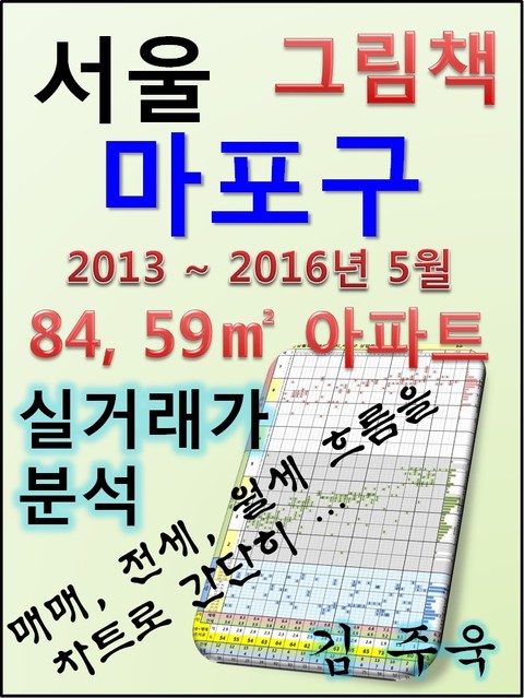 안녕하세요. 김주욱 입니다. 이 책은 그림책입니다. 아파트 가격에 대하여 누구나 쉽게 이해할 수 있도록, 그림으로 나타냈습니다. 복잡한 문장이 아닌 해당 아파트에 대한 가격 흐름을 그림으로 나타내어 누구나 쉽게 살펴 볼 수있고, 본인이 직접 판단할 수 있도록 만들었습니다. 해당 아파트에 대한 분석 의견은 수록하지 않았습니다. 타인의 재산에 대하여 평가를 한다는 것 자체가 큰 부담이 되어, 투자의견은 없다는 점 양해 바랍니다. 하지만, 이 책의 차트를 계속 보게되면, 어디를 공략해야 할지 쉽게 알 수 있을 것입니다. 아파트는 주거의 대상일 뿐 아니라 투자의 대상이기도 합니다. 여러분이 관심 있는 아파트의 가격 흐름을 살펴 보시고, 어떤 방향으로 접근해야할지 한번 생각해 보시기 바랍니다. 흔히 가격은 모든 것이 집결 된 종합 예술이라고 합니다. 요즘 아파트의 선정기준은 입지, 교육, 교통, 문화, 쇼핑 등 모든 것이 반영 되어 있습니다. 단 한권의 책으로 그 모든 것을 기술하기에는 내용이 너무 많고, 사실 그렇게 해봤자 정리가 잘되지 않습니다. 이에, 가격의 흐름을 통해서 어떤 방향으로 움직이는지, 앞으로 어떤 방향으로 전개될 것인지 생각해 보시기 바랍니다. 어려운 용어와 긴 문장으로 현상을 자세히 설명하는 것도 좋지만, 저는 단지 가격 흐름을 시각적으로 보여드리겠습니다. 아주 간단한 차트 한 장으로 특정 아파트의 분위기를 느껴 보시기 바랍니다. 이 한권의 책으로 많은 정보를 얻으시고, 각 구별로 계속 출간을 할 예정으로 관심있게 지켜봐 주시기 바랍니다. 1. 마포래미안푸르지오1단지_마포구 아현동 2. 래미안마포리버웰_마포구 용강동 3. 래미안밤섬리베뉴 Ⅰ_마포구 상수동 4. 카이저펠리스_마포구 상암동 5. 마포래미안푸르지오4단지_마포구 아현동 6. 마포래미안푸르지오2단지_마포구 아현동 7. 한강밤섬자이_마포구 하중동 8. 래미안밤섬리베뉴 Ⅱ_마포구 상수동 9. 마포자이2차_마포구 대흥동 10. 마포자이_마포구 염리동 11. 마포래미안푸르지오3단지_마포구 아현동 12. 브라운스톤공덕_마포구 신공덕동 13. 휴먼시아1단지_마포구 상암동 14. 상암월드컵파크4단지_마포구 상암동 15. 래미안공덕5차_마포구 공덕동 16. 공덕3삼성래미안_마포구 공덕동 17. 펜트라우스_마포구 신공덕동 18. 신공덕아이파크_마포구 신공덕동 19. 대림2차_마포구 용강동 20. 상암월드컵파크5단지_마포구 상암동 21. 상암월드컵파크6단지_마포구 상암동 22. 강변힐스테이트_마포구 현석동 23. 마포용강삼성래미안_마포구 용강동 24. 밤섬힐스테이트_마포구 현석동 25. 서강예가_마포구 창전동 26. 상암월드컵파크7단지_마포구 상암동 27. 두산위브_마포구 상수동 28. 상암월드컵파크3단지_마포구 상암동 29. 삼성_마포구 도화동 30. 공덕1삼성래미안_마포구 공덕동 31. 신공덕1차삼성래미안1아파트_마포구 신공덕동 32. 공덕2삼성래미안_마포구 공덕동 33. 신촌태영데시앙_마포구 창전동 34. 상암월드컵파크9단지_마포구 상암동 35. 상암월드컵파크10단지_마포구 상암동 36. 한화오벨리스크_마포구 도화동 37. 한강삼성_마포구 토정동 38. 밤섬경남아너스빌_마포구 신수동 39. 신공덕래미안3차_마포구 신공덕동 40. 창전동현대홈타운_마포구 창전동 41. 신공덕e편한세상_마포구 신공덕동 42. 동양엔파트_마포구 대흥동 43. 상암월드컵파크12단지_마포구 상암동 44. 한화꿈에그린_마포구 공덕동 45. 마포태영_마포구 대흥동 46. 울트라월드컵(참누리)_마포구 중동 47. 대원칸타빌_마포구 신수동 48. 서강GS_마포구 신정동 49. 래미안공덕4차_마포구 공덕동 50. 마포아크로타워_마포구 도화동 51. 염리삼성래미안_마포구 염리동 52. 경남아너스빌_마포구 신수동 53. 마포트라팰리스_마포구 도화동 54. 코오롱_마포구 연남동 55. 대림2_마포구 망원동 56. 벽산솔렌스힐_마포구 신수동 57. 세양청마루(101동)_마포구 염리동 58. 상암월드컵파크11단지_마포구 상암동 59. 현대_마포구 도화동 60. 한강2차대주피오레_마포구 망원동 61. 삼환나띠르빌_마포구 아현동 62. 창전래미안_마포구 창전동 63. 신공덕래미안2차_마포구 신공덕동 64. 신촌삼익_마포구 신수동 65. 월드컵아이파크(667-0)_마포구 성산동 66. 휴먼빌_마포구 망원동 67. 서강오벨리스크스위트_마포구 창전동 68. 해모로_마포구 창전동 69. 대림1_마포구 망원동 70. 창전 쌍용스윗닷홈_마포구 창전동 71. 상암월드컵파크2단지_마포구 상암동 72. 성산월드타운대림_마포구 성산동 73. 쌍용_마포구 마포동 74. 신촌금호_마포구 창전동 75. 망원동동원데쟈뷰_마포구 망원동 76. 성산2차e-편한세상_마포구 성산동 77. 도화현대_마포구 도화동 78. 대명_마포구 연남동 79. 대흥동세양_마포구 대흥동 80. 마포현대_마포구 공덕동 81. 마포동원베네스트_마포구 도화동 82. 신수동성원_마포구 신수동 83. 우림루미아트_마포구 망원동 84. 현대_마포구 신수동 85. 성산시영(유원)_마포구 성산동 86. 탑건진선미_마포구 망원동 87. 마포중동현대_마포구 중동 88. 청구_마포구 중동 89. 서서울삼성_마포구 아현동 90. 함성월드빌_마포구 망원동 91. 휴먼시아2단지_마포구 상암동 92. 공덕현대_마포구 공덕동 93. 두영이지안_마포구 망원동 94. 