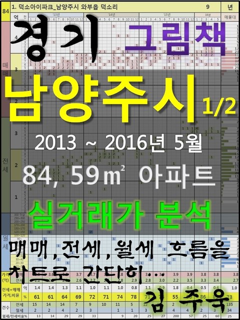안녕하세요. 김주욱 입니다. 이 책은 그림책입니다. 아파트 가격에 대하여 누구나 쉽게 이해할 수 있도록, 그림으로 나타냈습니다. 복잡한 문장이 아닌 해당 아파트에 대한 가격 흐름을 그림으로 나타내어 누구나 쉽게 살펴 볼 수있고, 본인이 직접 판단할 수 있도록 만들었습니다. 해당 아파트에 대한 분석 의견은 수록하지 않았습니다. 타인의 재산에 대하여 평가를 한다는 것 자체가 큰 부담이 되어, 투자의견은 없다는 점 양해 바랍니다. 하지만, 이 책의 차트를 계속 보게되면, 어디를 공략해야 할지 쉽게 알 수 있을 것입니다. 아파트는 주거의 대상일 뿐 아니라 투자의 대상이기도 합니다. 여러분이 관심 있는 아파트의 가격 흐름을 살펴 보시고, 어떤 방향으로 접근해야할지 한번 생각해 보시기 바랍니다. 흔히 가격은 모든 것이 집결 된 종합 예술이라고 합니다. 요즘 아파트의 선정기준은 입지, 교육, 교통, 문화, 쇼핑 등 모든 것이 반영 되어 있습니다. 단 한권의 책으로 그 모든 것을 기술하기에는 내용이 너무 많고, 사실 그렇게 해봤자 정리가 잘되지 않습니다. 이에, 가격의 흐름을 통해서 어떤 방향으로 움직이는지, 앞으로 어떤 방향으로 전개될 것인지 생각해 보시기 바랍니다. 어려운 용어와 긴 문장으로 현상을 자세히 설명하는 것도 좋지만, 저는 단지 가격 흐름을 시각적으로 보여드리겠습니다. 아주 간단한 차트 한 장으로 특정 아파트의 분위기를 느껴 보시기 바랍니다. 이 한권의 책으로 많은 정보를 얻으시고, 각 구별로 계속 출간을 할 예정으로 관심있게 지켜봐 주시기 바랍니다. 1. 덕소아이파크_남양주시 와부읍 덕소리 2. 신안인스빌_남양주시 별내동 3. 한화꿈에그린더스타_남양주시 별내동 4. 동부센트레빌_남양주시 와부읍 덕소리 5. 건영덕소리버파크_남양주시 와부읍 도곡리 6. 한화꿈에그린_남양주시 지금동 7. 퇴계원힐스테이트_남양주시 퇴계원면 퇴계원리 8. 휴먼시아5단지_남양주시 가운동 9. 상록리슈빌_남양주시 별내동 10. 휴먼시아3단지_남양주시 가운동 11. 별사랑마을(모아미래도)_남양주시 별내동 12. 별내 푸르지오_남양주시 별내동 13. 쌍용스윗닷홈리버_남양주시 와부읍 도곡리 14. 휴먼시아4단지_남양주시 가운동 15. 부영사랑으로7단지_남양주시 도농동 16. 부영e그린4,5차_남양주시 도농동 17. 세양청마루_남양주시 와부읍 덕소리 18. 우림루미아트_남양주시 와부읍 덕소리 19. 호평마을금강_남양주시 호평동 20. 도농센트레빌_남양주시 도농동 21. 금강펜테리움_남양주시 진접읍 금곡리 22. 한솔_남양주시 와부읍 덕소리 23. 덕소두산위브_남양주시 와부읍 도곡리 24. 부영e그린2차_남양주시 도농동 25. 강변삼익_남양주시 와부읍 덕소리 26. 호평마을신명스카이뷰하트_남양주시 호평동 27. 별내 유승한내들 이노스타_남양주시 별내동 28. 호평마을아이파크_남양주시 호평동 29. 호평마을한화꿈에그린_남양주시 호평동 30. 부영e그린3차_남양주시 도농동 31. 덕소강변현대_남양주시 와부읍 덕소리 32. 호평파라곤_남양주시 호평동 33. 호평임광그대가_남양주시 호평동 34. 신별내 퇴계원 어울림_남양주시 퇴계원면 퇴계원리 35. 주공2_남양주시 와부읍 덕소리 36. 경남아너스빌_남양주시 와부읍 덕소리 37. 부영사랑으로_남양주시 지금동 38. 반도유보라_남양주시 진접읍 금곡리 39. 오남아이파크_남양주시 오남읍 오남리 40. 남양i-좋은집2단지_남양주시 도농동 41. 남양i-좋은집1단지_남양주시 도농동 42. 벽산_남양주시 와부읍 도곡리 43. 덕소주공3_남양주시 와부읍 덕소리 44. 롯데낙천대_남양주시 도농동 45. 평내마을중흥에스-클래스(3단지)_남양주시 평내동 46. 강변해태_남양주시 와부읍 도곡리 47. 덕소쌍용_남양주시 와부읍 도곡리 48. 성일우리미_남양주시 와부읍 덕소리 49. 부영e그린4차_남양주시 도농동 50. 신안인스빌(2B/L)_남양주시 진접읍 금곡리 51. 호평마을동원로얄듀크_남양주시 호평동 52. 평내마을중흥에스-클래스(1단지)_남양주시 평내동 53. 평내마을중흥에스-클래스(2단지)_남양주시 평내동 54. 코오롱_남양주시 와부읍 덕소리 55. 대성_남양주시 와부읍 덕소리 56. 남양휴튼_남양주시 진접읍 금곡리 57. 신안인스빌(13B/L)_남양주시 진접읍 금곡리 58. 한강우성_남양주시 와부읍 도곡리 59. 호평마을중흥에스-클래스_남양주시 호평동 60. 남양i-좋은집3단지_남양주시 도농동 61. 현대_남양주시 와부읍 덕소리 62. 호평마을효성백년가약_남양주시 호평동 63. 호평마을대주파크빌_남양주시 호평동 64. 퇴계원쌍용예가_남양주시 퇴계원면 퇴계원리 65. 대림e편한세상1단지_남양주시 오남읍 양지리 66. 진도_남양주시 와부읍 덕소리 67. 호평마을우림필유_남양주시 호평동 68. 진접하우스토리_남양주시 진접읍 장현리 69. 동원베네스트_남양주시 지금동 70. 엘리시아_남양주시 퇴계원면 퇴계원리 71. 벽산메가트리움_남양주시 와부읍 덕소리 72. 평내마을금호어울림_남양주시 평내동 73. 호평마을한라비발디_남양주시 호평동 74. 성원_남양주시 퇴계원면 퇴계원리 75. 호평마을우미이노스빌_남양주시 호평동 76. 평내화성파크힐즈_남양주시 평내동 77. 평내마을상록데시앙_남양주시 평내동 78. 신창현풍림아이원1차_남양