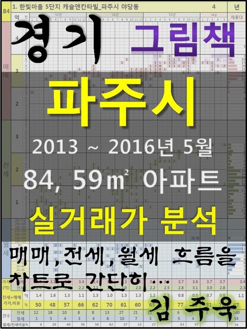 안녕하세요. 김주욱 입니다. 이 책은 그림책입니다. 아파트 가격에 대하여 누구나 쉽게 이해할 수 있도록, 그림으로 나타냈습니다. 복잡한 문장이 아닌 해당 아파트에 대한 가격 흐름을 그림으로 나타내어 누구나 쉽게 살펴 볼 수있고, 본인이 직접 판단할 수 있도록 만들었습니다. 이 책을 보고 좋은 투자를 하시는 것도 좋지만, 나쁜 투자를 하지 않는 것이 더 큰 성과라고 생각합니다. 그릇된 투자로 자금이 고갈되고, 심적 고통을 받는 것 보다 간단히 확인함으로써, 그것을 피할 수 있다는 것이 가장 중요하다고 생각합니다. 해당 아파트에 대한 분석 의견은 수록하지 않았습니다. 타인의 재산에 대하여 평가를 한다는 것 자체가 큰 부담이 되어, 투자의견은 없다는 점 양해 바랍니다. 하지만, 이 책의 차트를 계속 보게되면, 어디를 공략해야 할지 쉽게 알 수 있을 것입니다. 아파트는 주거의 대상일 뿐 아니라 투자의 대상이기도 합니다. 여러분이 관심 있는 아파트의 가격 흐름을 살펴 보시고, 어떤 방향으로 접근해야할지 한번 생각해 보시기 바랍니다. 흔히 가격은 모든 것이 집결 된 종합 예술이라고 합니다. 요즘 아파트의 선정기준은 입지, 교육, 교통, 문화, 쇼핑 등 모든 것이 반영 되어 있습니다. 단 한권의 책으로 그 모든 것을 기술하기에는 내용이 너무 많고, 사실 그렇게 해봤자 정리가 잘되지 않습니다. 이에, 가격의 흐름을 통해서 어떤 방향으로 움직이는지, 앞으로 어떤 방향으로 전개될 것인지 생각해 보시기 바랍니다. 어려운 용어와 긴 문장으로 현상을 자세히 설명하는 것도 좋지만, 저는 단지 가격 흐름을 시각적으로 보여드리겠습니다. 아주 간단한 차트 한 장으로 특정 아파트의 분위기를 느껴 보시기 바랍니다. 이 한권의 책으로 많은 정보를 얻으시고, 각 구별로 계속 출간을 할 예정으로 관심있게 지켜봐 주시기 바랍니다. 1. 한빛마을 5단지 캐슬앤칸타빌_파주시 야당동 2. 해솔마을 7단지 롯데캐슬_파주시 와동동 3. 한울마을 7단지 삼부르네상스 (1772)_파주시 동패동 4. 가람마을7단지한라비발디_파주시 와동동 5. 휴먼빌 레이크팰리스(982)_파주시 야당동 6. 해솔마을 5단지 삼부르네상스(679)_파주시 목동동 7. 산내마을6단지한라비발디_파주시 목동동 8. 한빛마을8단지(휴먼시아)(1031)_파주시 야당동 9. 가람마을 1단지 벽산한라(1308)_파주시 와동동 10. 가람마을4단지 한양수자인_파주시 와동동 11. 가람마을 10단지 월드메르디앙(1356)_파주시 와동동 12. 가람마을11단지 동문굿모닝힐(1368)_파주시 와동동 13. 해솔마을4단지 벽산우남연리지(667)_파주시 목동동 14. 신안실크밸리2차(900-0)_파주시 아동동 15. 신안실크밸리 1차(897-0)_파주시 아동동 16. 파주 푸르지오 (269-0)_파주시 조리읍 봉일천리 17. 해솔마을1단지 두산위브 (647)_파주시 목동동 18. 가람마을9단지 남양휴튼(1344)_파주시 와동동 19. 자유로아이파크(975-0)_파주시 야당동 20. 숲속길마을 월드메르디앙 센트럴파크_파주시 동패동 21. 책향기마을10단지동문굿모닝힐(1698)_파주시 동패동 22. 가람마을8단지 동문굿모닝힐_파주시 와동동 23. 파주 힐스테이트 2차_파주시 문산읍 당동리 24. 해솔마을3단지운정현대_파주시 목동동 25. 숲속길마을동문굿모닝힐(560)_파주시 문발동 26. 파주힐스테이트1차_파주시 문산읍 당동리 27. 금촌주공7단지(1019-0)_파주시 금촌동 28. 상록데시앙(1708)_파주시 동패동 29. 산내마을8단지월드메르디앙(114-37)_파주시 목동동 30. 가람마을4단지 한양수자인 (1321)_파주시 와동동 31. 후곡마을뜨란채주공4단지_파주시 금촌동 32. 청석마을동문굿모닝힐(982-0)_파주시 다율동 33. 가람마을3단지(동문굿모닝힐)_파주시 와동동 34. 진흥효자(1702)_파주시 동패동 35. 산내마을11단지현대아이파크_파주시 목동동 36. 해솔마을 2단지 월드메르디앙(2-117)_파주시 목동동 37. 새꽃마을뜨란채(972-0)_파주시 금촌동 38. 교하1차월드메르디앙(2-117)_파주시 목동동 39. 교하벽산(200-1)_파주시 동패동 40. 일신건영휴먼빌_파주시 문산읍 문산리 41. 한일 유앤아이2차(1014-1)_파주시 금촌동 42. 파주한양수자인리버팰리스아파트_파주시 문산읍 당동리 43. 자연앤꿈에그린 6단지 아파트_파주시 문산읍 당동리 44. 자연앤꿈에그린5단지아파트_파주시 문산읍 당동리 45. 동광 모닝스카이_파주시 파주읍 연풍리 46. 교하현대1(2-110)_파주시 목동동 47. 유승앙브와즈1(1789-0)_파주시 탄현면 법흥리 48. 문산선유4단지 휴먼시아_파주시 문산읍 선유리 49. 대방노블랜드(1015-0)_파주시 금촌동 50. 후곡마을주공6단지_파주시 금촌동 51. 신원아침도시_파주시 문산읍 문산리 52. 두산위브_파주시 문산읍 선유리 53. 진흥소슬마을_파주시 문산읍 선유리 54. 현대2(101)_파주시 목동동 55. 쇠재마을뜨란채주공5단지_파주시 금촌동 56. 한라비발디(992-1)_파주시 조리읍 대원리 57. 팜스프링(283-0)_파주시 아동동 58. 그린시티동문(218-0)_파주시 조리읍 대원리 59. 장안6흰돌마을(199-6)_파주시 금릉동 60. 두보3(234-22)_파주시 금촌동 61. 동양부로미(196-2)_파주시 금릉동 62. 대방노블랜드(587-0)_파주시 야동동 63. 장미3(233-6)_파주시 금촌동 64. 건일장미(228-1)_파주시 금촌동 65. 성호2파크힐(259-2)_파주시 조리읍 봉일천리 66. 장안(미우)5