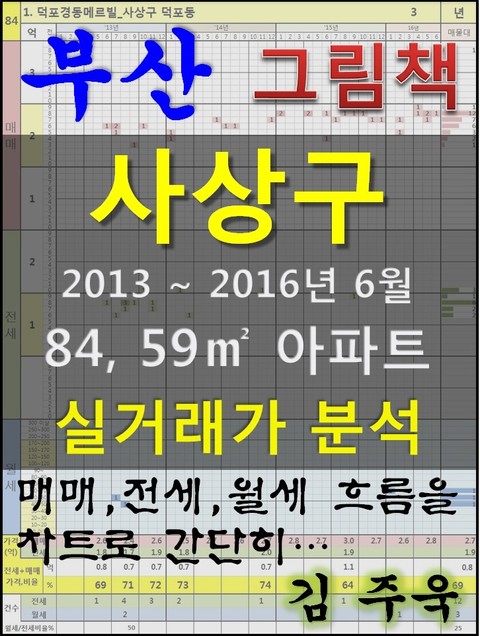 안녕하세요. 김주욱 입니다. 이 책은 그림책입니다. 아파트 가격에 대하여 누구나 쉽게 이해할 수 있도록, 그림으로 나타냈습니다. 복잡한 문장이 아닌 해당 아파트에 대한 가격 흐름을 그림으로 나타내어 누구나 쉽게 살펴 볼 수있고, 본인이 직접 판단할 수 있도록 만들었습니다. 이 책을 보고 좋은 투자를 하시는 것도 좋지만, 나쁜 투자를 하지 않는 것이 더 큰 성과라고 생각합니다. 그릇된 투자로 자금이 고갈되고, 심적 고통을 받는 것 보다 간단히 확인함으로써, 그것을 피할 수 있다는 것이 가장 중요하다고 생각합니다. 해당 아파트에 대한 분석 의견은 수록하지 않았습니다. 타인의 재산에 대하여 평가를 한다는 것 자체가 큰 부담이 되어, 투자의견은 없다는 점 양해 바랍니다. 하지만, 이 책의 차트를 계속 보게되면, 어디를 공략해야 할지 쉽게 알 수 있을 것입니다. 아파트는 주거의 대상일 뿐 아니라 투자의 대상이기도 합니다. 여러분이 관심 있는 아파트의 가격 흐름을 살펴 보시고, 어떤 방향으로 접근해야할지 한번 생각해 보시기 바랍니다. 흔히 가격은 모든 것이 집결 된 종합 예술이라고 합니다. 요즘 아파트의 선정기준은 입지, 교육, 교통, 문화, 쇼핑 등 모든 것이 반영 되어 있습니다. 단 한권의 책으로 그 모든 것을 기술하기에는 내용이 너무 많고, 사실 그렇게 해봤자 정리가 잘되지 않습니다. 이에, 가격의 흐름을 통해서 어떤 방향으로 움직이는지, 앞으로 어떤 방향으로 전개될 것인지 생각해 보시기 바랍니다. 어려운 용어와 긴 문장으로 현상을 자세히 설명하는 것도 좋지만, 저는 단지 가격 흐름을 시각적으로 보여드리겠습니다. 아주 간단한 차트 한 장으로 특정 아파트의 분위기를 느껴 보시기 바랍니다. 여러분이 관심있는 곳 뿐만아닌 유사한 아파트도 참조하시어 현명한 선택을 하시길 바랍니다. ※주의. 본 자료는 실거래가 사이트에서 제공하고 있는 계약일 기준 자료로 통계자료 활용시에는 수치가 왜곡될 수 있으니 참고자료로만 활용하시기 바라며, 외부 공개시에는 반드시 신고일 기준으로 집계되는 공식통계를 이용하여 주시기 바랍니다. 1. 덕포경동메르빌_사상구 덕포동 2. 괘법한신2_사상구 괘법동 3. 사상강변동원_사상구 괘법동 4. 한신_사상구 괘법동 5. 롯데캐슬_사상구 엄궁동 6. 한일유엔아이_사상구 주례동 7. 엘지신주례1_사상구 주례동 8. 덕포동벽산블루밍_사상구 덕포동 9. 학장동 삼정그린코아 아파트_사상구 학장동 10. 엘지신주례2_사상구 주례동 11. 쌍용스윗닷홈_사상구 엄궁동 12. 럭키주례1_사상구 주례동 13. 주례1차동일_사상구 주례동 14. 주은타워빌_사상구 괘법동 15. 주례청구_사상구 주례동 16. 럭키주례_사상구 주례동 17. 동양한신_사상구 삼락동 18. 모라동 골든파크_사상구 모라동 19. 신구덕우성_사상구 학장동 20. 학장동2차삼성_사상구 학장동 21. 코오롱_사상구 엄궁동 22. 학장무학_사상구 학장동 23. 엄궁대림_사상구 엄궁동 24. 덕포청구_사상구 덕포동 25. 주례2차동일_사상구 주례동 26. 반도보라매머드_사상구 주례동 27. 모라벽산_사상구 모라동 28. 모라동원타운_사상구 모라동 29. 주례한효_사상구 주례동 30. 우성_사상구 모라동 31. 덕포늘푸른_사상구 덕포동 32. 창조센추리_사상구 주례동 33. 경화힐타워A동_사상구 괘법동 34. 엄궁2차한신_사상구 엄궁동 35. 반도보라타운_사상구 학장동 36. 현대무지개타운_사상구 주례동 37. 벽산신익타운_사상구 덕포동 38. 1차삼성_사상구 학장동 39. 오양힐타운_사상구 덕포동 40. 엄궁한신1차_사상구 엄궁동 41. 자유_사상구 덕포동 42. 주례제일타워맨션_사상구 주례동 43. 현대_사상구 주례동 44. 섬진4차_사상구 엄궁동 45. 신엄궁대동_사상구 엄궁동 46. 삼정그린코아_사상구 모라동 47. 우성2차_사상구 모라동 48. 조양_사상구 주례동 49. 학장대림_사상구 학장동 50. 무학_사상구 모라동 51. 학장극동_사상구 학장동 52. 엄궁럭키_사상구 엄궁동 53. 동일_사상구 주례동 54. 창우블루빌_사상구 주례동 55. 금강_사상구 학장동 56. 화인_사상구 모라동 57. 벽산하나로타운_사상구 덕포동 58. 벽산신화_사상구 주례동 59. 동유네이처하우스_사상구 주례동 60. 삼성타워_사상구 엄궁동 61. 구덕극동_사상구 학장동 62. 주례벽산_사상구 주례동 63. 부원파크타운_사상구 덕포동 64. 고려아펠리아_사상구 주례동 65. 우신모라_사상구 모라동 66. 대성_사상구 주례동 67. 무학다솜_사상구 엄궁동 68. 한일_사상구 모라동 69. 창신그린힐_사상구 모라동 70. 협성_사상구 모라동 71. 신흥동백맨션_사상구 엄궁동 72. 유원_사상구 덕포동 73. 주례맨션_사상구 주례동 74. 일산맨션_사상구 주례동 75. 금잔디_사상구 덕포동 76. 부원맨션_사상구 모라동 77. 정남파크맨션_사상구 학장동 78. 괘법맨션_사상구 괘법동