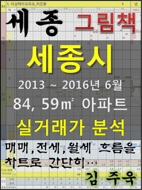 안녕하세요. 김주욱 입니다. 이 책은 그림책입니다. 아파트 가격에 대하여 누구나 쉽게 이해할 수 있도록, 그림으로 나타냈습니다. 복잡한 문장이 아닌 해당 아파트에 대한 가격 흐름을 그림으로 나타내어 누구나 쉽게 살펴 볼 수있고, 본인이 직접 판단할 수 있도록 만들었습니다. 이 책을 보고 좋은 투자를 하시는 것도 좋지만, 나쁜 투자를 하지 않는 것이 더 큰 성과라고 생각합니다. 그릇된 투자로 자금이 고갈되고, 심적 고통을 받는 것 보다 간단히 확인함으로써, 그것을 피할 수 있다는 것이 가장 중요하다고 생각합니다. 해당 아파트에 대한 분석 의견은 수록하지 않았습니다. 타인의 재산에 대하여 평가를 한다는 것 자체가 큰 부담이 되어, 투자의견은 없다는 점 양해 바랍니다. 하지만, 이 책의 차트를 계속 보게되면, 어디를 공략해야 할지 쉽게 알 수 있을 것입니다. 아파트는 주거의 대상일 뿐 아니라 투자의 대상이기도 합니다. 여러분이 관심 있는 아파트의 가격 흐름을 살펴 보시고, 어떤 방향으로 접근해야할지 한번 생각해 보시기 바랍니다. 흔히 가격은 모든 것이 집결 된 종합 예술이라고 합니다. 요즘 아파트의 선정기준은 입지, 교육, 교통, 문화, 쇼핑 등 모든 것이 반영 되어 있습니다. 단 한권의 책으로 그 모든 것을 기술하기에는 내용이 너무 많고, 사실 그렇게 해봤자 정리가 잘되지 않습니다. 이에, 가격의 흐름을 통해서 어떤 방향으로 움직이는지, 앞으로 어떤 방향으로 전개될 것인지 생각해 보시기 바랍니다. 어려운 용어와 긴 문장으로 현상을 자세히 설명하는 것도 좋지만, 저는 단지 가격 흐름을 시각적으로 보여드리겠습니다. 아주 간단한 차트 한 장으로 특정 아파트의 분위기를 느껴 보시기 바랍니다. 여러분이 관심있는 곳 뿐만아닌 유사한 아파트도 참조하시어 현명한 선택을 하시길 바랍니다. ※주의. 본 자료는 실거래가 사이트에서 제공하고 있는 계약일 기준 자료로 통계자료 활용시에는 수치가 왜곡될 수 있으니 참고자료로만 활용하시기 바라며, 외부 공개시에는 반드시 신고일 기준으로 집계되는 공식통계를 이용하여 주시기 바랍니다. 1. 더샵레이크파크_어진동 2. 더샵센트럴시티_어진동 3. 첫마을4단지_한솔동 4. 현대힐스테이트(도램마을15단지)_도담동 5. 퍼스트프라임3단지_한솔동 6. 퍼스트프라임1단지_한솔동 7. 첫마을6단지(힐스테이트)_한솔동 8. 한신휴플러스(11단지)_종촌동 9. 가재마을9단지(세종한신휴플러스리버파크)_종촌동 10. 푸르지오(8단지)_아름동 11. 첫마을7단지(래미안)_한솔동 12. 대우푸르지오(10단지)_아름동 13. 도램마을1단지(웅진스타클래스)_도담동 14. 범지기마을1단지(한양수자인에듀센텀)_아름동 15. 도램마을10단지 호반 어반시티_도담동 16. 가락마을 20단지(호반베르디움5차)_고운동 17. 가재7단지 중흥S클래스 센텀파크1차_종촌동 18. 현대엠코타운_종촌동 19. 중흥센텀파크2차(가재마을12단지)_종촌동 20. 범지기마을7단지 호반에코시티_아름동 21. 한양수자인 에듀시티(4단지)_아름동 22. 제일풍경채에듀파크_종촌동 23. 엘가도램마을12단지_도담동 24. 한신엘리트파크(범지기9단지)_아름동 25. 첫마을5단지(푸르지오)_한솔동 26. 도램마을20단지(에듀파크)_도담동 27. 한신휴플러스_종촌동 28. 래미안_한솔동 29. 센트레빌(가재마을4단지)_종촌동 30. 중흥에듀타운(가재마을3단지)_종촌동 31. 힐스테이트_한솔동 32. 도램마을16단지(모아미래도)_도담동 33. 도램마을18단지(모아미래도)_도담동 34. 가락마을3단지(호반베르디움)_고운동 35. 가락마을8단지(LH고운뜰아파트)_고운동 36. 가락마을16단진(에듀그린)_고운동 37. 푸르지오_한솔동 38. 가락마을22단지(에듀힐스)_고운동 39. 가락마을21단지(에듀포레)_고운동 40. 도램마을17단지(모아미래도)_도담동 41. 도램마을 19단지(모아미래도)_도담동 42. 가락마을9단지(신동아 파밀리에)_고운동 43. 가락마을13단지(대광로제비앙)_고운동 44. 세종한양수자인 에듀시티_아름동 45. 가재2단지 호반베르디움3차_종촌동 46. 도램마을3단지(웅진스타클래스)_도담동 47. 도램마을2단지(웅진스타클래스)_도담동 48. 조치원죽림자이_조치원읍 죽림리 49. 조치원 신흥 e편한세상(아)_조치원읍 신흥리 50. 엘가에코힐(도램마을5단지)_도담동 51. 신흥대우푸르지오_조치원읍 신흥리 52. 신성연기미소지움_금남면 용포리 53. 세종e편한세상_조치원읍 신안리 54. 이지더원(가락마을4단지)_고운동 55. 가락마을17단지(골드클래스)_고운동 56. 도램마을4단지(이지더원)_도담동 57. 죽림우방유셀_조치원읍 죽림리 58. 조치원신동아파밀리에_조치원읍 죽림리 59. 가락마을11단지(중흥에듀카운티)_고운동 60. 죽림대우푸르지오_조치원읍 죽림리 61. 가락마을15단지(중흥파크뷰)_고운동 62. 신흥주공_조치원읍 신흥리 63. 욱일1차_조치원읍 침산리 64. 두진리버빌_금남면 용포리 65. 욱일2차_조치원읍 침산리 66. 대신하나로_부강면 부강리 67. 풍산_조치원읍 정리 68. 다원파크리안_조치원읍 남리 69. 현대_조치원읍 교리 70. 신동아_조치원읍 죽림리 71. 목화_조치원읍 교리 72. 삼일_조치원읍 죽림리 73. 삼정하이츠_조치원읍 죽림리 74. 계룡_조치원읍 교리 75. 다산청정_연동면 명학리 76. 성호늘