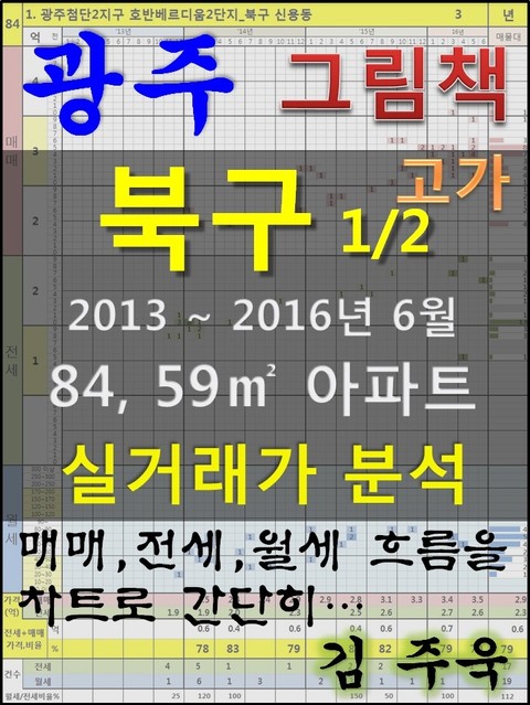 안녕하세요. 김주욱 입니다. 이 책은 그림책입니다. 아파트 가격에 대하여 누구나 쉽게 이해할 수 있도록, 그림으로 나타냈습니다. 복잡한 문장이 아닌 해당 아파트에 대한 가격 흐름을 그림으로 나타내어 누구나 쉽게 살펴 볼 수있고, 본인이 직접 판단할 수 있도록 만들었습니다. 이 책을 보고 좋은 투자를 하시는 것도 좋지만, 나쁜 투자를 하지 않는 것이 더 큰 성과라고 생각합니다. 그릇된 투자로 자금이 고갈되고, 심적 고통을 받는 것 보다 간단히 확인함으로써, 그것을 피할 수 있다는 것이 가장 중요하다고 생각합니다. 해당 아파트에 대한 분석 의견은 수록하지 않았습니다. 타인의 재산에 대하여 평가를 한다는 것 자체가 큰 부담이 되어, 투자의견은 없다는 점 양해 바랍니다. 하지만, 이 책의 차트를 계속 보게되면, 어디를 공략해야 할지 쉽게 알 수 있을 것입니다. 아파트는 주거의 대상일 뿐 아니라 투자의 대상이기도 합니다. 여러분이 관심 있는 아파트의 가격 흐름을 살펴 보시고, 어떤 방향으로 접근해야할지 한번 생각해 보시기 바랍니다. 흔히 가격은 모든 것이 집결 된 종합 예술이라고 합니다. 요즘 아파트의 선정기준은 입지, 교육, 교통, 문화, 쇼핑 등 모든 것이 반영 되어 있습니다. 단 한권의 책으로 그 모든 것을 기술하기에는 내용이 너무 많고, 사실 그렇게 해봤자 정리가 잘되지 않습니다. 이에, 가격의 흐름을 통해서 어떤 방향으로 움직이는지, 앞으로 어떤 방향으로 전개될 것인지 생각해 보시기 바랍니다. 어려운 용어와 긴 문장으로 현상을 자세히 설명하는 것도 좋지만, 저는 단지 가격 흐름을 시각적으로 보여드리겠습니다. 아주 간단한 차트 한 장으로 특정 아파트의 분위기를 느껴 보시기 바랍니다. 여러분이 관심있는 곳 뿐만아닌 유사한 아파트도 참조하시어 현명한 선택을 하시길 바랍니다. ※주의. 본 자료는 실거래가 사이트에서 제공하고 있는 계약일 기준 자료로 통계자료 활용시에는 수치가 왜곡될 수 있으니 참고자료로만 활용하시기 바라며, 외부 공개시에는 반드시 신고일 기준으로 집계되는 공식통계를 이용하여 주시기 바랍니다. 1. 광주첨단2지구 호반베르디움2단지_북구 신용동 2. 벽산블루밍메가씨티1단지_북구 운암동 3. 제일풍경채 리버파크_북구 신용동 4. 첨단자이1단지_북구 신용동 5. 광주첨단2지구 호반베르디움 1단지_북구 신용동 6. 코아루렉시안_북구 운암동 7. 첨단자이2차_북구 신용동 8. 한양수자인리버뷰_북구 신용동 9. 남양휴튼_북구 운암동 10. 벽산블루밍메가씨티3단지_북구 운암동 11. 용봉엘리체_북구 용봉동 12. 양산지구현진에버빌_북구 본촌동 13. 한화꿈에그린_북구 용봉동 14. 지에스그린자이2차_북구 양산동 15. 연제 대광 로제비앙 _북구 연제동 16. 연제2차대주피오레_북구 연제동 17. 한국아델리움2차_북구 임동 18. 운암동롯데캐슬3단지_북구 운암동 19. 대주피오레_북구 매곡동 20. 운암동롯데캐슬1단지_북구 운암동 21. 중흥S클래스_북구 용봉동 22. 지에스그린자이1차_북구 양산동 23. 대성베르힐_북구 매곡동 24. 삼각동그린타운_북구 삼각동 25. 휴먼시아_북구 용봉동 26. 금호_북구 일곡동 27. 대주피오레_북구 연제동 28. 용봉3차대주파크빌_북구 용봉동 29. 현대2_북구 두암동 30. 부영사랑으로_북구 본촌동 31. 서광인텔파크_북구 매곡동 32. 삼라마이다스_북구 동림동 33. 영무예다음_북구 양산동 34. 송지트리뷰_북구 양산동 35. 한국아델리움_북구 임동 36. 모아미래도_북구 두암동 37. 현대2_북구 문흥동 38. 모아미래도_북구 용봉동 39. 나산건강_북구 운암동 40. 금호_북구 문흥동 41. 라인동산_북구 문흥동 42. 현대3_북구 용봉동 43. 대림2_북구 일곡동 44. 현대3_북구 일곡동 45. 벽산_북구 일곡동 46. 한국하이빌_북구 신안동 47. 블루시안2차_북구 운암동 48. 우미3_북구 운암동 49. 동림푸른주공4_북구 동림동 50. 대주파크빌1차_북구 용봉동 51. 호반_북구 문흥동 52. 유탑하늘세움_북구 운암동 53. 대주파크빌2_북구 용봉동 54. 호반리젠시빌_북구 양산동 55. 두암현대_북구 두암동 56. 주공_북구 임동 57. 글로벌_북구 각화동 58. 신동아_북구 용봉동 59. 모아맨션_북구 문흥동 60. 무등파크3_북구 두암동 61. 금형트리뷰_북구 문흥동 62. 블루시안1차_북구 운암동 63. 금호_북구 매곡동 64. 현대_북구 운암동 65. 삼성_북구 용봉동 66. 라인동산_북구 두암동 67. 우미_북구 삼각동 68. 한국_북구 운암동 69. 모아1_북구 중흥동 70. 모아_북구 신안동 71. 우미2_북구 문흥동 72. 한국레이크빌_북구 연제동 73. 우성_북구 운암동 74. 중흥_북구 용봉동 75. 미라보3_북구 운암동 76. 대주_북구 운암동 77. 명지맨션_북구 문흥동 78. 해광_북구 문흥동 79. 금호_북구 운암동 80. 금호타운1_북구 각화동 81. 삼익_북구 동림동 82. 대주2_북구 문흥동 83. 대우_북구 일곡동 84. 현대_북구 연제동 85. 진로_북구 일곡동 86. 호반_북구 용봉동 87. 삼호_북구 운암동 88. 금호타운_북구 오치동 89. 삼익_북구 매곡동 90. 금호_북구 용봉동 91. 아남_북구 매곡동 92. 현대2_북구 일곡동 93. 대림1_북구 일곡동 94. 한일_북구 일곡동 95. 한국_북구 일곡동 96. 무등파크2_북구 두암동 97. 주공3_북구 운암동 98. 무등파크맨션_북구 두암동 99. 우성_북구 