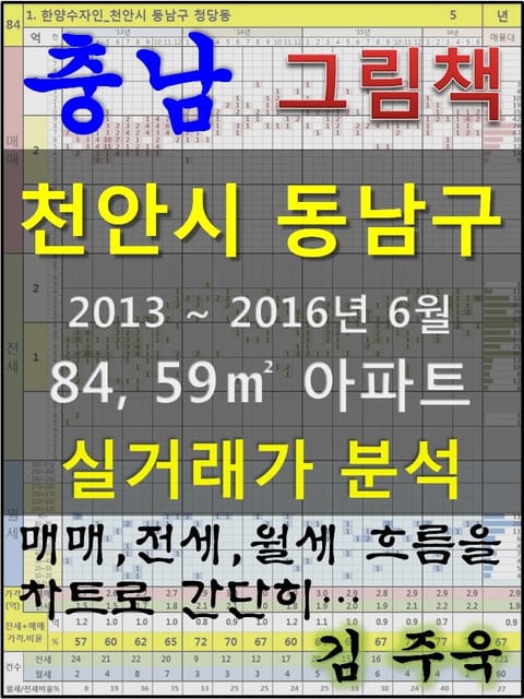 안녕하세요. 김주욱 입니다. 이 책은 그림책입니다. 아파트 가격에 대하여 누구나 쉽게 이해할 수 있도록, 그림으로 나타냈습니다. 복잡한 문장이 아닌 해당 아파트에 대한 가격 흐름을 그림으로 나타내어 누구나 쉽게 살펴 볼 수있고, 본인이 직접 판단할 수 있도록 만들었습니다. 이 책을 보고 좋은 투자를 하시는 것도 좋지만, 나쁜 투자를 하지 않는 것이 더 큰 성과라고 생각합니다. 그릇된 투자로 자금이 고갈되고, 심적 고통을 받는 것 보다 간단히 확인함으로써, 그것을 피할 수 있다는 것이 가장 중요하다고 생각합니다. 해당 아파트에 대한 분석 의견은 수록하지 않았습니다. 타인의 재산에 대하여 평가를 한다는 것 자체가 큰 부담이 되어, 투자의견은 없다는 점 양해 바랍니다. 하지만, 이 책의 차트를 계속 보게되면, 어디를 공략해야 할지 쉽게 알 수 있을 것입니다. 아파트는 주거의 대상일 뿐 아니라 투자의 대상이기도 합니다. 여러분이 관심 있는 아파트의 가격 흐름을 살펴 보시고, 어떤 방향으로 접근해야할지 한번 생각해 보시기 바랍니다. 흔히 가격은 모든 것이 집결 된 종합 예술이라고 합니다. 요즘 아파트의 선정기준은 입지, 교육, 교통, 문화, 쇼핑 등 모든 것이 반영 되어 있습니다. 단 한권의 책으로 그 모든 것을 기술하기에는 내용이 너무 많고, 사실 그렇게 해봤자 정리가 잘되지 않습니다. 이에, 가격의 흐름을 통해서 어떤 방향으로 움직이는지, 앞으로 어떤 방향으로 전개될 것인지 생각해 보시기 바랍니다. 어려운 용어와 긴 문장으로 현상을 자세히 설명하는 것도 좋지만, 저는 단지 가격 흐름을 시각적으로 보여드리겠습니다. 아주 간단한 차트 한 장으로 특정 아파트의 분위기를 느껴 보시기 바랍니다. 여러분이 관심있는 곳 뿐만아닌 유사한 아파트도 참조하시어 현명한 선택을 하시길 바랍니다. ※주의. 본 자료는 실거래가 사이트에서 제공하고 있는 계약일 기준 자료로 통계자료 활용시에는 수치가 왜곡될 수 있으니 참고자료로만 활용하시기 바라며, 외부 공개시에는 반드시 신고일 기준으로 집계되는 공식통계를 이용하여 주시기 바랍니다. 1. 한양수자인_천안시 동남구 청당동 2. 용곡한라비발디_천안시 동남구 용곡동 3. 신방한성필하우스_천안시 동남구 신방동 4. 방죽안휴먼시아_천안시 동남구 신부동 5. 용곡동 우림필유_천안시 동남구 용곡동 6. 용곡삼성쉐르빌_천안시 동남구 용곡동 7. 중흥S클래스산운마을_천안시 동남구 청당동 8. 신방 한라비발디_천안시 동남구 신방동 9. 구성휴먼시아_천안시 동남구 구성동 10. 신방푸르지오_천안시 동남구 신방동 11. 안서금호어울림_천안시 동남구 안서동 12. 용곡마을동일하이빌(1단지)_천안시 동남구 용곡동 13. 경남아너스빌_천안시 동남구 청수동 14. 우방유쉘_천안시 동남구 신부동 15. 청당마을벽산블루밍_천안시 동남구 청당동 16. 경남아너스빌_천안시 동남구 신부동 17. 용곡마을세광2차엔리치타워_천안시 동남구 용곡동 18. 용곡마을아이파크_천안시 동남구 용곡동 19. 우방유쉘(910)_천안시 동남구 신부동 20. 향촌현대_천안시 동남구 신방동 21. 부경파크빌2차_천안시 동남구 안서동 22. 청솔엘지에스케이_천안시 동남구 청수동 23. 대림한숲_천안시 동남구 신부동 24. 구성I-PARK_천안시 동남구 구성동 25. 신성천안미소지움_천안시 동남구 구성동 26. 한라동백2_천안시 동남구 신방동 27. 두레현대1_천안시 동남구 신방동 28. 일봉공원한화꿈에그린_천안시 동남구 다가동 29. 청광플러스원_천안시 동남구 신부동 30. 청당마을신도브래뉴_천안시 동남구 청당동 31. 성지새말2_천안시 동남구 신방동 32. 두레현대2_천안시 동남구 신방동 33. 용곡1차세광엔리치타워_천안시 동남구 용곡동 34. 향목그라비스_천안시 동남구 구성동 35. 성지새말1_천안시 동남구 신방동 36. 서해그랑블_천안시 동남구 다가동 37. 고은여의주_천안시 동남구 안서동 38. 목천신도브래뉴2차_천안시 동남구 목천읍 신계리 39. 대림한내_천안시 동남구 신부동 40. 신동아목련_천안시 동남구 신방동 41. 현대_천안시 동남구 청수동 42. 웰스빌_천안시 동남구 다가동 43. 대우목화4_천안시 동남구 쌍용동 44. 동아태조_천안시 동남구 신부동 45. 우방_천안시 동남구 신부동 46. 극동2차_천안시 동남구 청수동 47. 극동1차_천안시 동남구 청수동 48. 극동_천안시 동남구 원성동 49. 목천신도브래뉴1차_천안시 동남구 목천읍 신계리 50. 쌍용신성_천안시 동남구 쌍용동 51. 현대2_천안시 동남구 신방동 52. 쌍용_천안시 동남구 구성동 53. 봉명동선경_천안시 동남구 봉명동 54. 신성_천안시 동남구 다가동 55. 병천모드니에_천안시 동남구 병천면 병천리 56. 봉명청솔(3차)_천안시 동남구 봉명동 57. 세광엔리치빌1차_천안시 동남구 목천읍 응원리 58. 초원라이프_천안시 동남구 원성동 59. 극동아파트_천안시 동남구 신부동 60. 임광_천안시 동남구 쌍용동 61. 천안목천동우1차_천안시 동남구 목천읍 신계리 62. 현대_천안시 동남구 신방동 63. 원앙마을부영1차_천안시 동남구 목천읍 삼성리 64. 목천이수프라임_천안시 동남구 목천읍 신계리 65. 재동타워_천안시 동남구 목천읍 서리 66. 대우목화(6차)_천안시 동남구 봉명동 