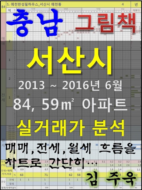 안녕하세요. 김주욱 입니다. 이 책은 그림책입니다. 아파트 가격에 대하여 누구나 쉽게 이해할 수 있도록, 그림으로 나타냈습니다. 복잡한 문장이 아닌 해당 아파트에 대한 가격 흐름을 그림으로 나타내어 누구나 쉽게 살펴 볼 수있고, 본인이 직접 판단할 수 있도록 만들었습니다. 이 책을 보고 좋은 투자를 하시는 것도 좋지만, 나쁜 투자를 하지 않는 것이 더 큰 성과라고 생각합니다. 그릇된 투자로 자금이 고갈되고, 심적 고통을 받는 것 보다 간단히 확인함으로써, 그것을 피할 수 있다는 것이 가장 중요하다고 생각합니다. 해당 아파트에 대한 분석 의견은 수록하지 않았습니다. 타인의 재산에 대하여 평가를 한다는 것 자체가 큰 부담이 되어, 투자의견은 없다는 점 양해 바랍니다. 하지만, 이 책의 차트를 계속 보게되면, 어디를 공략해야 할지 쉽게 알 수 있을 것입니다. 아파트는 주거의 대상일 뿐 아니라 투자의 대상이기도 합니다. 여러분이 관심 있는 아파트의 가격 흐름을 살펴 보시고, 어떤 방향으로 접근해야할지 한번 생각해 보시기 바랍니다. 흔히 가격은 모든 것이 집결 된 종합 예술이라고 합니다. 요즘 아파트의 선정기준은 입지, 교육, 교통, 문화, 쇼핑 등 모든 것이 반영 되어 있습니다. 단 한권의 책으로 그 모든 것을 기술하기에는 내용이 너무 많고, 사실 그렇게 해봤자 정리가 잘되지 않습니다. 이에, 가격의 흐름을 통해서 어떤 방향으로 움직이는지, 앞으로 어떤 방향으로 전개될 것인지 생각해 보시기 바랍니다. 어려운 용어와 긴 문장으로 현상을 자세히 설명하는 것도 좋지만, 저는 단지 가격 흐름을 시각적으로 보여드리겠습니다. 아주 간단한 차트 한 장으로 특정 아파트의 분위기를 느껴 보시기 바랍니다. 여러분이 관심있는 곳 뿐만아닌 유사한 아파트도 참조하시어 현명한 선택을 하시길 바랍니다. ※주의. 본 자료는 실거래가 사이트에서 제공하고 있는 계약일 기준 자료로 통계자료 활용시에는 수치가 왜곡될 수 있으니 참고자료로만 활용하시기 바라며, 외부 공개시에는 반드시 신고일 기준으로 집계되는 공식통계를 이용하여 주시기 바랍니다. 1. 예천한성필하우스_서산시 예천동 2. 서산 예천 푸르지오_서산시 예천동 3. 석림한성필하우스_서산시 석림동 4. 서산동문동한라비발디_서산시 동문동 5. 동문동코아루_서산시 동문동 6. 서산동문동아더프라임_서산시 동문동 7. 현진에버빌_서산시 동문동 8. 롯데캐슬_서산시 읍내동 9. 센스빌_서산시 석남동 10. 석림중앙하이츠빌_서산시 석림동 11. 이안서산테크노밸리_서산시 성연면 왕정리 12. 서산읍내현대_서산시 읍내동 13. 신한미지엔_서산시 동문동 14. 삼익참드림_서산시 읍내동 15. 늘푸른오스카빌_서산시 지곡면 무장리 16. 현대_서산시 동문동 17. 현대(예천)_서산시 예천동 18. 영진크로바_서산시 석남동 19. 서산청구제네스_서산시 인지면 둔당리 20. 한성스위트빌_서산시 음암면 부산리 21. 동신_서산시 읍내동 22. G-파크빌_서산시 석림동 23. 세창리베하우스_서산시 갈산동 24. 산호옥마을_서산시 인지면 둔당리 25. 수림아파트_서산시 음암면 부장리 26. 대림_서산시 동문동 27. 주공2단지_서산시 석림동 28. 삼성1차_서산시 죽성동 29. 풍림_서산시 대산읍 영탑리 30. 삼성2차_서산시 죽성동 31. 영진로얄_서산시 석림동 32. 영진훼밀리_서산시 동문동 33. 주공(3단지임대)_서산시 석림동 34. 삼호_서산시 대산읍 대산리 35. 지곡미래아파트_서산시 지곡면 화천리 36. 동아1_서산시 죽성동 37. 아진_서산시 인지면 둔당리 38. 서림_서산시 음암면 도당리 39. 서령_서산시 동문동 40. 한아름_서산시 음암면 도당리 41. 동남2_서산시 수석동 42. 동남_서산시 수석동 43. 동아2_서산시 죽성동 44. 한미_서산시 대산읍 대산리 45. 음암마을_서산시 음암면 부산리 46. 개나리_서산시 음암면 도당리 47. 서정운산마을_서산시 운산면 갈산리 48. 우리마을_서산시 음암면 상홍리 49. 무림_서산시 오남동
