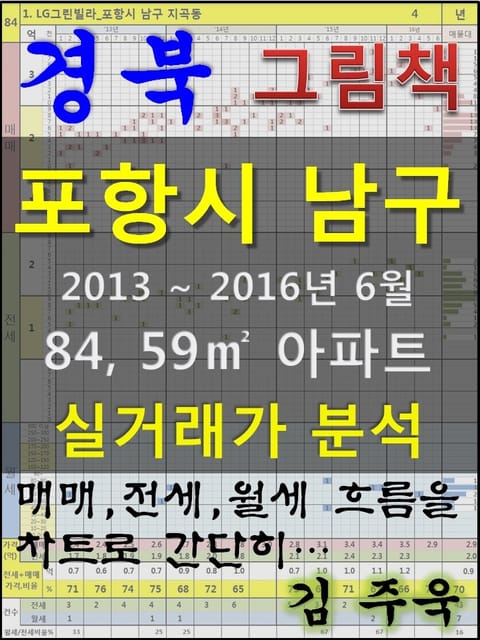 안녕하세요. 김주욱 입니다. 이 책은 그림책입니다. 아파트 가격에 대하여 누구나 쉽게 이해할 수 있도록, 그림으로 나타냈습니다. 복잡한 문장이 아닌 해당 아파트에 대한 가격 흐름을 그림으로 나타내어 누구나 쉽게 살펴 볼 수있고, 본인이 직접 판단할 수 있도록 만들었습니다. 이 책을 보고 좋은 투자를 하시는 것도 좋지만, 나쁜 투자를 하지 않는 것이 더 큰 성과라고 생각합니다. 그릇된 투자로 자금이 고갈되고, 심적 고통을 받는 것 보다 간단히 확인함으로써, 그것을 피할 수 있다는 것이 가장 중요하다고 생각합니다. 해당 아파트에 대한 분석 의견은 수록하지 않았습니다. 타인의 재산에 대하여 평가를 한다는 것 자체가 큰 부담이 되어, 투자의견은 없다는 점 양해 바랍니다. 하지만, 이 책의 차트를 계속 보게되면, 어디를 공략해야 할지 쉽게 알 수 있을 것입니다. 아파트는 주거의 대상일 뿐 아니라 투자의 대상이기도 합니다. 여러분이 관심 있는 아파트의 가격 흐름을 살펴 보시고, 어떤 방향으로 접근해야할지 한번 생각해 보시기 바랍니다. 흔히 가격은 모든 것이 집결 된 종합 예술이라고 합니다. 요즘 아파트의 선정기준은 입지, 교육, 교통, 문화, 쇼핑 등 모든 것이 반영 되어 있습니다. 단 한권의 책으로 그 모든 것을 기술하기에는 내용이 너무 많고, 사실 그렇게 해봤자 정리가 잘되지 않습니다. 이에, 가격의 흐름을 통해서 어떤 방향으로 움직이는지, 앞으로 어떤 방향으로 전개될 것인지 생각해 보시기 바랍니다. 어려운 용어와 긴 문장으로 현상을 자세히 설명하는 것도 좋지만, 저는 단지 가격 흐름을 시각적으로 보여드리겠습니다. 아주 간단한 차트 한 장으로 특정 아파트의 분위기를 느껴 보시기 바랍니다. 여러분이 관심있는 곳 뿐만아닌 유사한 아파트도 참조하시어 현명한 선택을 하시길 바랍니다. ※주의. 본 자료는 실거래가 사이트에서 제공하고 있는 계약일 기준 자료로 통계자료 활용시에는 수치가 왜곡될 수 있으니 참고자료로만 활용하시기 바라며, 외부 공개시에는 반드시 신고일 기준으로 집계되는 공식통계를 이용하여 주시기 바랍니다. 1. LG그린빌라_포항시 남구 지곡동 2. 효자그린1차(고층,저층)_포항시 남구 지곡동 3. 삼성그린빌라_포항시 남구 지곡동 4. 효자풍림아이원_포항시 남구 효자동 5. 효자그린2차(현대,삼성그린APT)_포항시 남구 지곡동 6. 효자웰빙타운에스케이뷰1차_포항시 남구 효자동 7. 효자웰빙타운에스케이뷰3차_포항시 남구 효자동 8. 승리_포항시 남구 효자동 9. 이동그린빌명품_포항시 남구 이동 10. 대잠그린파크명품_포항시 남구 대잠동 11. 유강코아루1단지_포항시 남구 연일읍 유강리 12. 이동우방파크빌_포항시 남구 대잠동 13. 유강코아루2단지_포항시 남구 연일읍 유강리 14. 대잠트리니엔_포항시 남구 대잠동 15. 이동경성골드_포항시 남구 이동 16. 효자그린2차(저층)_포항시 남구 지곡동 17. 태왕아너스오션_포항시 남구 송도동 18. 이동현대홈타운_포항시 남구 대잠동 19. 이동대우_포항시 남구 대잠동 20. 대잠아델리아_포항시 남구 대잠동 21. 낙원7~9동_포항시 남구 지곡동 22. 유강청구_포항시 남구 연일읍 유강리 23. 대림한숲타운3차_포항시 남구 연일읍 유강리 24. 포항 연일 에코 코아루_포항시 남구 연일읍 오천리 25. 대림한숲타운1차_포항시 남구 연일읍 유강리 26. 대우네오빌프리미엄_포항시 남구 연일읍 오천리 27. 유강경성홈타운_포항시 남구 연일읍 유강리 28. 대림한숲타운2차_포항시 남구 연일읍 유강리 29. 송도세잔베르체_포항시 남구 송도동 30. 아너스타운_포항시 남구 오천읍 세계리 31. 산호늘푸른_포항시 남구 연일읍 유강리 32. 부영사랑으로1차_포항시 남구 오천읍 원리 33. 대우네오빌3차_포항시 남구 연일읍 생지리 34. 유강우방타운_포항시 남구 연일읍 유강리 35. 힐링스타(B동)_포항시 남구 오천읍 문덕리 36. 준양참마을_포항시 남구 오천읍 문덕리 37. 용정그린하이츠_포항시 남구 해도동 38. 대도신성펠리스_포항시 남구 대도동 39. 청명에버힐_포항시 남구 해도동 40. 디오채D_포항시 남구 대도동 41. 신성펠리스_포항시 남구 상도동 42. 형산강변타운_포항시 남구 연일읍 생지리 43. 연일삼도한솔타운1_포항시 남구 연일읍 생지리 44. 연일삼도한솔타운3_포항시 남구 연일읍 동문리 45. 힐링타운(A동)_포항시 남구 오천읍 문덕리 46. 유니파크1차_포항시 남구 오천읍 용덕리 47. 축복웰빙타운(89-4)_포항시 남구 대도동 48. 힐링타운(B동)_포항시 남구 오천읍 문덕리 49. 연일삼도한솔타운2_포항시 남구 연일읍 생지리 50. 삼성아트풀_포항시 남구 오천읍 문덕리 51. 효성_포항시 남구 인덕동 52. 하이리치A동_포항시 남구 연일읍 생지리 53. 누리안_포항시 남구 상도동 54. 우방신세계타운2차_포항시 남구 오천읍 구정리 55. 우방신세계타운_포항시 남구 인덕동 56. 연일우성한빛타운_포항시 남구 연일읍 괴정리 57. 대우네오빌1차_포항시 남구 연일읍 생지리 58. 리치패밀리_포항시 남구 대잠동 59. 축복웰빙타운(103-5)_포항시 남구 대도동 60. 대우네오빌2차_포항시 남구 연일읍 생지리 61. 필앤유_포항시 남구 오천읍 문덕리 62. 필앤유 B동_포항시 남구 오천읍 문덕리 63. 오
