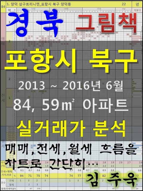 안녕하세요. 김주욱 입니다. 이 책은 그림책입니다. 아파트 가격에 대하여 누구나 쉽게 이해할 수 있도록, 그림으로 나타냈습니다. 복잡한 문장이 아닌 해당 아파트에 대한 가격 흐름을 그림으로 나타내어 누구나 쉽게 살펴 볼 수있고, 본인이 직접 판단할 수 있도록 만들었습니다. 이 책을 보고 좋은 투자를 하시는 것도 좋지만, 나쁜 투자를 하지 않는 것이 더 큰 성과라고 생각합니다. 그릇된 투자로 자금이 고갈되고, 심적 고통을 받는 것 보다 간단히 확인함으로써, 그것을 피할 수 있다는 것이 가장 중요하다고 생각합니다. 해당 아파트에 대한 분석 의견은 수록하지 않았습니다. 타인의 재산에 대하여 평가를 한다는 것 자체가 큰 부담이 되어, 투자의견은 없다는 점 양해 바랍니다. 하지만, 이 책의 차트를 계속 보게되면, 어디를 공략해야 할지 쉽게 알 수 있을 것입니다. 아파트는 주거의 대상일 뿐 아니라 투자의 대상이기도 합니다. 여러분이 관심 있는 아파트의 가격 흐름을 살펴 보시고, 어떤 방향으로 접근해야할지 한번 생각해 보시기 바랍니다. 흔히 가격은 모든 것이 집결 된 종합 예술이라고 합니다. 요즘 아파트의 선정기준은 입지, 교육, 교통, 문화, 쇼핑 등 모든 것이 반영 되어 있습니다. 단 한권의 책으로 그 모든 것을 기술하기에는 내용이 너무 많고, 사실 그렇게 해봤자 정리가 잘되지 않습니다. 이에, 가격의 흐름을 통해서 어떤 방향으로 움직이는지, 앞으로 어떤 방향으로 전개될 것인지 생각해 보시기 바랍니다. 어려운 용어와 긴 문장으로 현상을 자세히 설명하는 것도 좋지만, 저는 단지 가격 흐름을 시각적으로 보여드리겠습니다. 아주 간단한 차트 한 장으로 특정 아파트의 분위기를 느껴 보시기 바랍니다. 여러분이 관심있는 곳 뿐만아닌 유사한 아파트도 참조하시어 현명한 선택을 하시길 바랍니다. ※주의. 본 자료는 실거래가 사이트에서 제공하고 있는 계약일 기준 자료로 통계자료 활용시에는 수치가 왜곡될 수 있으니 참고자료로만 활용하시기 바라며, 외부 공개시에는 반드시 신고일 기준으로 집계되는 공식통계를 이용하여 주시기 바랍니다. 1. 양덕 삼구트리니엔_포항시 북구 양덕동 2. 우현풍림아이원_포항시 북구 우현동 3. 창포아이파크3차_포항시 북구 두호동 4. 포항양덕풍림아이원_포항시 북구 양덕동 5. 두산 위브 더 제니스_포항시 북구 장성동 6. 장성 삼도 뷰엔빌W_포항시 북구 장성동 7. 창포아이파크2차_포항시 북구 두호동 8. 창포아이파크4차_포항시 북구 두호동 9. 양덕 삼구트리니엔3차_포항시 북구 양덕동 10. 포항 e편한세상 양덕_포항시 북구 양덕동 11. 삼성쉐르빌_포항시 북구 양덕동 12. 삼도뷰엔빌_포항시 북구 흥해읍 학천리 13. 우현삼도뷰엔빌W_포항시 북구 우현동 14. 해맞이그린빌1단지_포항시 북구 환호동 15. 현진에버빌2단지_포항시 북구 장성동 16. 현진에버빌(1단지)_포항시 북구 장성동 17. 양덕2차 e-편한세상_포항시 북구 양덕동 18. 창포아이파크1차_포항시 북구 두호동 19. 양학 도뮤토 _포항시 북구 득량동 20. 현진에버빌3단지_포항시 북구 장성동 21. 우현3차신동아파밀리에_포항시 북구 우현동 22. 한양수자인_포항시 북구 양덕동 23. 금호어울림_포항시 북구 우현동 24. 롯데낙천대_포항시 북구 장성동 25. 우방신천지_포항시 북구 두호동 26. 우방비치타운_포항시 북구 항구동 27. 이동삼성_포항시 북구 득량동 28. 신동아베르디_포항시 북구 우현동 29. 우방하이츠_포항시 북구 두호동 30. 신동아베르디2차_포항시 북구 우현동 31. 양학산KCC스위첸_포항시 북구 용흥동 32. 학잠동아_포항시 북구 학잠동 33. 대원하이츠_포항시 북구 두호동 34. 대림힐타운_포항시 북구 학잠동 35. 삼도드림파크_포항시 북구 흥해읍 성곡리 36. 우방청운타운_포항시 북구 학산동 37. 대림골든빌_포항시 북구 장성동 38. 현대타워2_포항시 북구 용흥동 39. 보성_포항시 북구 장성동 40. 해맞이그린빌2단지_포항시 북구 환호동 41. 학잠보성_포항시 북구 학잠동 42. 장성현대_포항시 북구 장성동 43. 대동우방타운_포항시 북구 우현동 44. 장성경성홈타운_포항시 북구 장성동 45. 보운메트로_포항시 북구 죽도동 46. 빌드원르헤브_포항시 북구 장성동 47. 금아드림팰리스_포항시 북구 흥해읍 옥성리 48. 경성홈타운_포항시 북구 득량동 49. 동아금강맨션_포항시 북구 두호동 50. 용흥보성타운_포항시 북구 용흥동 51. 창포청구타운_포항시 북구 장성동 52. 경성홈타운골드_포항시 북구 장성동 53. 우현금성굿모닝빌_포항시 북구 우현동 54. 장성청구하이츠_포항시 북구 장성동 55. 삼광풀리스3차_포항시 북구 장성동 56. 풀리스 4차_포항시 북구 장성동 57. 푸르미르_포항시 북구 죽도동 58. 삼우펠리스_포항시 북구 장성동 59. 신성펠리스 2차_포항시 북구 죽도동 60. 우방1_포항시 북구 용흥동 61. 경성홈타운2_포항시 북구 득량동 62. 삼성푸른_포항시 북구 득량동 63. 산호그린4_포항시 북구 장성동 64. 럭키장성1_포항시 북구 장성동 65. 산호그린맨션7_포항시 북구 장성동 66. 산호그린맨션2_포항시 북구 두호동 67. 럭키장성2_포항시 북구 장성동 68. 산호그린5_포항시 북구 장성동 69. 롯데_포항시 북구 두호동 70. 축복 웰빙타운_포