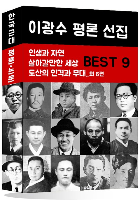 이광수 평론 선집 BEST 9 <평론 선집 9편 목록> 1. 도산의 인격과 무대 2. 인토 3. 인생과 자연 4. 살아갈만한 세상 5. 제비집 6. 물 7. 우리소 8. 나는 바쁘다 9. 백로 1909년 첫 작품 사랑인가를 발표한 이후 일본 유학 중에 소설과 시, 논설 등을 발표하였고, 귀국 후 오산학교에서 교편을 잡다가 망명, 1919년 도쿄(東京)의 조선인 유학생의 2·8 독립 선언을 주도했으며, 2·8 독립 선언서를 기초한 후 3·1 운동 전후 상하이로 건너가 상하이 임시정부에 참가하고 독립신문을 발행했다. 1921년 귀국 후에는 동아일보와 조선일보 등의 언론에 칼럼과 장·단편 소설, 시 등을 발표하였다. 안창호, 윤치호, 김성수 등의 감화를 받아 민족 개조론과 실력 양성론을 제창하였으며, 1922년 흥사단의 전위조직인 수양동맹회를 조직하고, 안창호를 도와 흥사단 국내 조직과 수양동우회에 적극 참여하였다. 수양동우회 사건을 계기로 하여, 친일파로 굴곡을 겪기도 한 이후에는 친일 행각을 비판받기도 했다. 일제 강점기 후반에는 민족성, 인간성의 개조를 주장하였고 일제 시대 영향을 주었던 나치즘 사조에 대한 연구를 진행하기도 했다. 그는 안창호, 윤치호의 사상적 계승자이기도 했다.