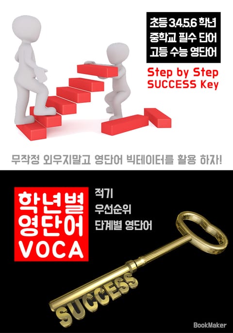 학년별 영단어 VOCA (우선순위 단계별 영단어 : 무작정 외우지 말고 빅테이터 활용!) 모든 학습과 교육은 첫 단추를 잘 맞춰야 합니다. 적기 단계별 영어(영단어=VOCA)학습을 통한 성공의 열쇠 (SUCCESS KEY)를 가져보세요! 무작정 외무지 말고, 영단어 우선순위 빅테이터를 활용한 영단어 기억법을 체험하자!! 학년별 교과서에 필수 영단어를 통해 *초등 3.4.5.6학년 *중등 필수 영단어 *고등 수능 빈출 영단어를 통해 목표한 점수와 취업의 기회를 한 권의 영단어 책으로 잡을 수 있습니다. 1석 3조를 누릴 수 있는 기적같은 영단어 보카책!