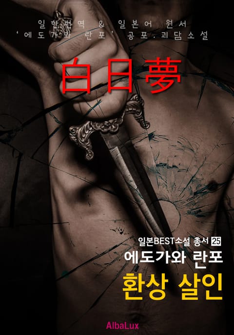 환상 살인 ('에도가와 란포' 공포 괴담 소설 : 일한대역) 일본 추리소설 아버지 (원제: 백일몽) '백일몽[day-dreaming, 白日夢]'은 현실적으로 만족시킬 수 없는 욕구나 소원을 공상이나 상상의 세계에서 얻으려는 심리적 도피기제. ---<줄거리>--- 일한대역 (한글 번역) 믿거나? 말거나? 백중 대낮에 펼쳐지는 살인 행각을 떠벌리고 다닌다. 바람을 피우는 아내를 더 이상 참지 못하고, 살인을 저지르는데... 그 남편은 어떤 이유로 살인을 고백하는 것인가? # 짧고도 강력한 공포를 만날 수 있는 작품!!! <에도가와 란포>는 "일본 추리소설의 아버지"로 불린다. 세계 10대 추리 탐정 캐릭터에 반열에 올라가 있는 "아케치 코고로" 는 '셜록 홈즈, 아르센 뒤팡'과 같은 통찰력과 추진력으로 그들을 앞도하는 캐릭터 이다. 또한, 공포, 스릴러와 기묘한 괴기 소설 작품을 남김으로서 "동양"의 추리소설의 새로운 장을 열었다. 그는 <에도가와 란포 상> 일본 탐정 작가클럽(현재는 일본 추리작가 협회)에서 탐정소설을 장려하기위해 만든 문학상이다. 통칭 란포상이고, 추리작가의 등용문으로 알려져 있다. 일본의 추리소설의 아버지라고 불리는 에도가와 란포의 기부를 기금으로 하고 있고 수상작은 고단샤(講談社) 문고에서 출판된다. 1992년 제38회부터는 후지TV가 후원을 시작하여, 수상작은 후지TV에서 단막 드라마나 영화로 만들어지게 되었다. # <에도가와 란포> 작가의 일본어 원제 : '백일몽'의 소설을 [환상 살인]로 의역하여 제목을 바꾸었다. 더불어 일본어 원서를 기초로 하고 있지만 일한대역을 하면서 재미와 한국의 풍습과 문화적인 언어를 살려서 원서와 다른 많은 부분에서 의역하여 한글 문장으로 완성되었음을 미리 공지해드립니다. (소설 속에 나오는 지역 또는 이름은 변경될 수 있습니다) 일본어 원서를 제공함에 있어서 '후리가나'가 포함되었음을 인지해주시고, 많은 부분을 한글로 옮기면서 의역하였음으로 독자분의 일본어 실력에 맞게 또 다른 감정을 살려 번역해 보는 것도 추천해 드립니다.