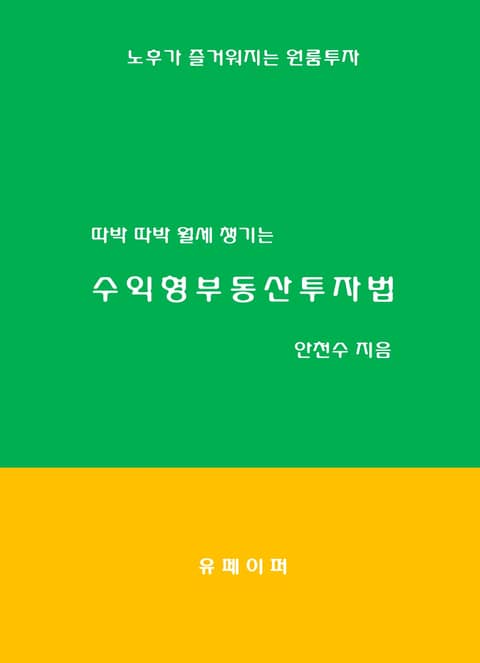 본서는 안정된 월세를 받을 수 있는 수익형부동산에 투자하는 방법을 안내해드립니다. 특히, 원룸투자에 특화되어 있습니다. 수익성과 안정성을 겸비한 물건을 찾아내는 방법을 쉽게 안내하고 있습니다. 단숨에 읽을 수 있도록 소설형식을 취하고 있습니다. 수익형부동산의 종류와 장단점을 기술했습니다. 주택임대사업자가 꼭 알아야 하는 세금지식(취득세, 소득세, 양도소득세 등)을 기술했습니다. 원룸을 취득한 후 관리하는 방법까지 안내해드리고 있습니다. 본서의 최종목적은 투자물건을 스스로 선택하고 세금, 관리에 이르도록 하는 것입니다. 부디 성공적인 투자가 되기를 희망합니다.