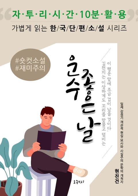 정보의 공해 속에 둘러싸여 있는 우리는, 한 달에 책 한 권을 정독하여 읽기도 힘든 시대에 살고 있습니다. 그래서 바쁜 현대인들과 독서 읽기를 힘들어하는 학생들이 가볍게 접근하여 읽도록 “시대를 대표하는 한국단편소설” 들을 모아 자투리 시간 활용 묶음을 만들었습니다. 이 책의 가장 큰 특징은 문맥을 흩트리지 않는 현대어를 감미하였고 삽화를 첨가하여 흥미와 독서를 즐길 수 있도록 제작되었습니다.