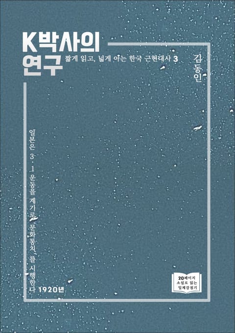 <K박사의 연구>로 읽는 20페이지 근현대사는 소설이라는 스토리 라인을 통해 시대상을 읽고, 이제는 고어가 되어버린 1920년대의 단어들을 해설함으로 근현대 우리네 어휘를 공부할 수 있게 구성하였다. 포스트 팬데믹 시대, 혼자 있는 시간이 많아졌으나 책을 읽는 행위는 여전히 어렵다.