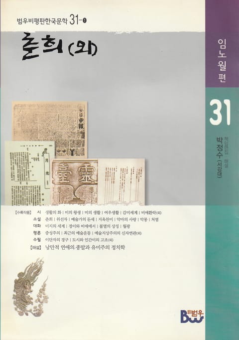‘범우비평판 한국문학’은 ‘민족 정신사의 복원’이라는 측면에서 망각된 것들을 애써 소환하는 힘겨운 작업을 자청하면서 출발했다. 따라서 ‘범우비평판 한국문학’은 그간 서구적 가치의 잣대로 외면 당한 채 매몰된 문인들과 작품들을 광범위하게 다시 복원시켰다. 이를 통해 언어 예술로서 문학이 민족 정신의 응결체이며, ‘정신의 위기’로 일컬어지는 민족사의 왜곡상을 성찰할 수 있는 전망대임을 확인하고자 한다.