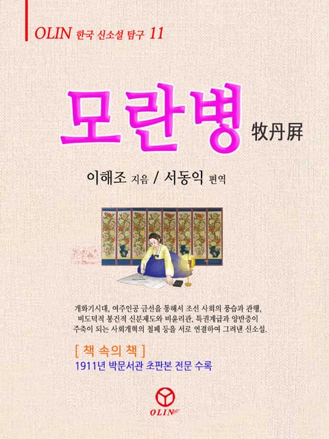 본서는 1911년 박문서관(博文書館)에서 발행한 이해조의 《모란병》을 일반 독자들이 국어사전이나 옥편 없이 그대로 줄줄 읽을 수 있도록 고어체 원고를 현대어 가로쓰기 전자책(이펍 2.0) 판형으로 번역한 편역본(번역+가로쓰기 현대문 편집본)에다 최초 발표된 이해조의 《모란병》초판본을 <책 속의 책> 형태로 삽입한 전자 도서이다. 그러므로 이 전자책 한 권으로 초판본 원본과 현대문 번역본을 대조해 가며 함께 읽을 수 있는 재미와 실리를 구현할 수 있다. ●