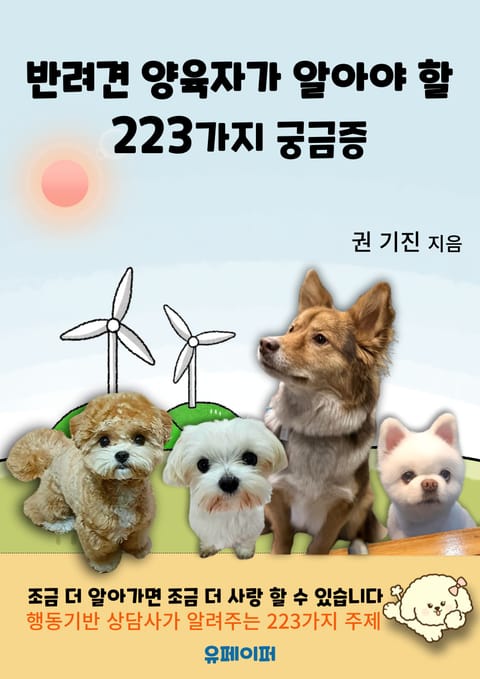 저자는 이전 저서 '무엇이 개를 힘들게 하는가!'를 통해 반려견들이 어떤 원인에 의해 온갖 행동 문제와 심리적인 문제를 나타내는 지, 그 어려움을 해소하기 위해 반려인들이 해야 할 일이 무엇인지를 설명하였으며, 그에 이어 '반려견 양육자가 알아야 할 223가지 궁금증'을 통해 반려견에 관한 이해를 한층 더 높이고자 223가지 주제들에 대한 해석과 답변을 하고 있습니다.