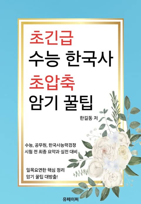 『초긴급 수능 한국사 초압축 암기 꿀팁』은 벼락치기생, 암기 울렁증 환자, 바쁜 수험생들을 위한 구급함 같은 책이다. 한국사 필수 개념을 압축해서 정리하고, 쉽게 외울 수 있도록 도와주는 초강력 암기법이 가득 담겨 있다. 이 책은 한 문장, 한 개념이라도 더 빠르게, 더 확실하게 암기할 수 있도록 만든 긴급 처방전이다. 시간은 없지만 성적은 올려야 하는 수험생, 한국사 때문에 머리 싸매고 있는 학생들에게 강력 추천! 한국사 암기, 재밌게 하면 진짜 잘 외워진다!