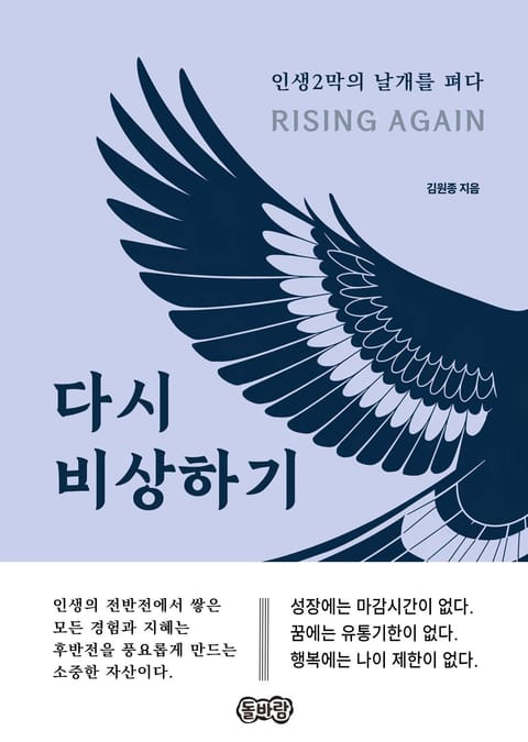 〈다시 비상하기〉는 인생의 전환점에 선 중장년층을 위한 깊이 있는 안내서이다. 평균 수명이 늘어난 현대 사회에서 은퇴 이후의 삶은 짧게는 이십 년, 길게는 삼십 년 이상 지속된다. 이 책은 인생2막을 단순한 여생이 아닌 새로운 도약의 시기로 바라보며, 자아실현과 의미 있는 성장을 추구하는 여정을 안내한다. 〈인생방정식〉의 재구성, 〈회복탄력성〉 키우기, 〈자아창조〉의 과정, 〈미니멀 라이프〉의 실천 등 인생 후반전을 풍요롭게 채울 수 있는 다양한 관점과 실질적 지혜를 담았다.
