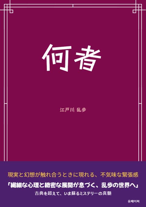 『누구인가(何者)』와 『난쟁이(一寸法師)』는 일본 추리소설의 거장 에도가와 란포의 단편으로 명탐정 아케치 코고로가 등장하는 작품입니다. 두 작품은 각각 1926년, 1929년 신문에 연재되었는데, 당시 에도가와 란포가 직접 작성한 작가의 말로 책소개를 갈음하겠습니다.