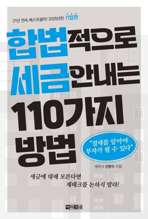 『합법적으로 세금 안 내는 110가지 방법 · 기업편』은 사업을 성공적으로 꾸려 나가기 위해 반드시 알아야 하는 세금 관련 지식을 담고 있다. 20년이 훌쩍 넘는 경력의 베테랑 세무 전문가인 신방수 세무사가 전하는 세세하고 사려 깊은 설명은 세금에 대한 새로운 시각을 갖게 한다. 저자는 오랜 현장 경험을 바탕으로 실제 기업들이 세금 때문에 겪는 어려움을 정확하게 진단하고, 그에 관한 해답을 명쾌하게 제시한다.