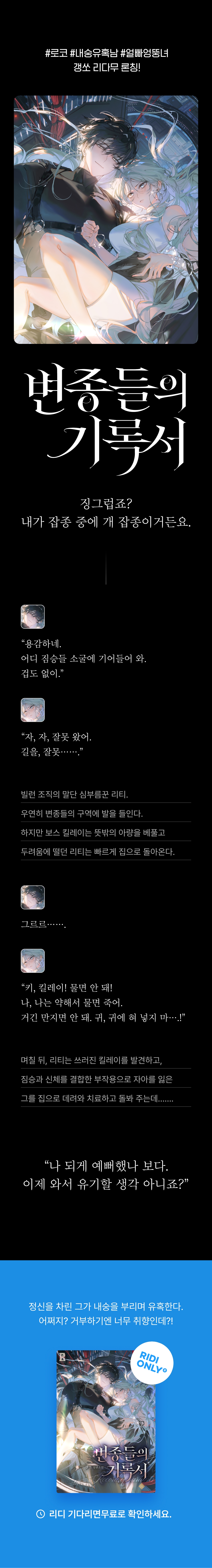 설정도 신박하고 재밌어요 남주에 비해 여주가 너무 소동물 같아서 귀엽네요 ㅋㅋ
