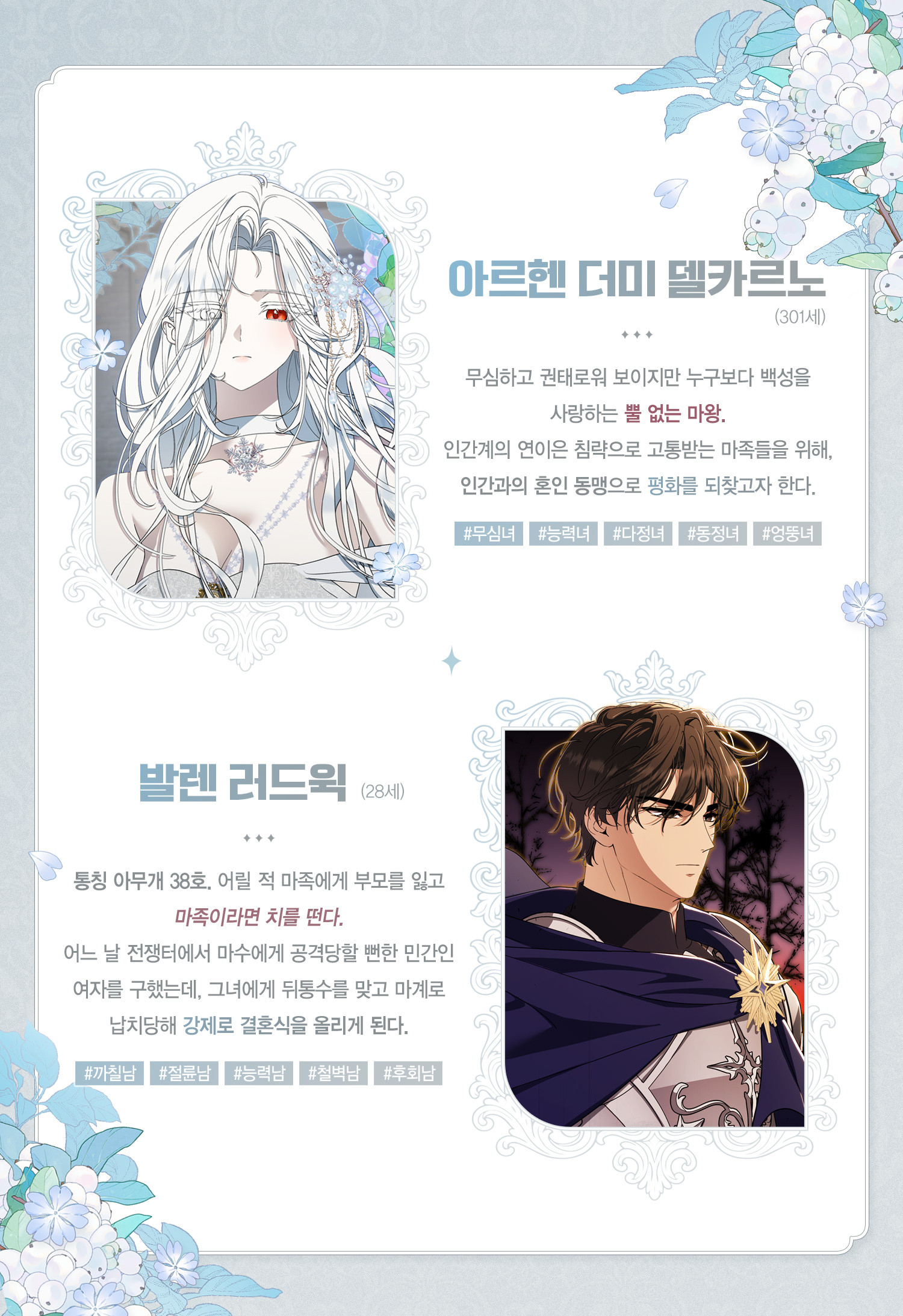 이 작품 웹툰화 소식 떴을 때부터 솔직히 심장부터 먼저 반응했음 (≧▽≦) 르릅 작가님 작품은 원래 웃기고, 야하고, 살짝 미쳐 있어서 그냥 믿고 보는 편인데, 이게 웹툰으로 나온다? 안 볼 이유가 없음ㅋㅋ 실제로 보니까 왜 다들 좋아하는지 바로 납득됨. 웃기다 터지다가, 갑자기 감정 한 번 툭 건드려서 “어…?” 하게 만들고, 그러다 또 야하고 웃긴 장면 나와서 손가락이 멈출 틈이 없음 (;´∀`) 이야기는 마족 혐오가 뿌리 깊게 박힌 인간 용사 발렌이, 전쟁터에서 구한 여자가 사실 서큐버스이자 마왕 아르헨이었다는 데서 시작함. 눈 떠보니 마계 결혼식장이라는 전개부터 이미 정신없고 웃김ㅋㅋ 거기에 혼인 동맹 조건이 ‘임신할 때까지’라는 설정까지 더해지니까 시작부터 그냥 맛이 보장됨. 발렌은 끝까지 날 서 있고 공격적인데, 아르헨은 생각보다 너무 차분하고 담담해서 둘이 처음부터 끝까지 계속 어긋나는 게 포인트임. 이 작품에서 제일 좋은 건 둘의 성격이 진짜 극과 극이라는 점임. 발렌은 까칠하고 말도 날카롭고 감정 숨기지도 못하는 타입인데, 아르헨은 무심해 보이면서도 감정 기복 거의 없고 상대를 밀어붙이지 않음. 그래서 발렌 혼자서 계속 오해하고, 혼자 튀고, 혼자 예민해져서 보는 사람이 웃다가도 “아… 저거 좀 짠한데” 하게 됨 (´・ω・`) 특히 요즘은 발렌이 말로는 계속 밀어내면서 행동은 점점 아르헨 쪽으로 기울어 있어서, 본인은 부정하는데 이미 보호자 모드 들어간 게 너무 웃김ㅋㅋ 씬도 인상적임. 수위는 분명 있는데 그냥 야하기만 한 게 아니라 상황 자체가 묘하게 웃기거나 감정이 섞여 있어서 부담이 없음. 컷 연출도 좋아서 “아 여기서 끊는다고?” 하면서 다음 화 눌러버리게 됨. 마족들도 그냥 장식용이 아니라 성격 하나하나 살아 있어서 세계관이 생각보다 탄탄하게 느껴지고, 전투 장면도 깔끔해서 판타지 보는 맛이 있음 (ง •̀_•́)ง 결론적으로 이 작품은 웃기고 야한 로코인 줄 알고 들어갔다가, 성격 정반대인 두 사람이 조금씩 엮여가는 감정선을 보게 되는 웹툰임. 혐관에서 서서히 감기는 관계 좋아하면 진짜 잘 맞을 듯. 앞으로 이 둘이 얼마나 더 가까워질지, 발렌이 언제 자기 마음 인정할지 너무 궁금해서 계속 보게 됨. 다음 화 또 기다린다… (;ω;)