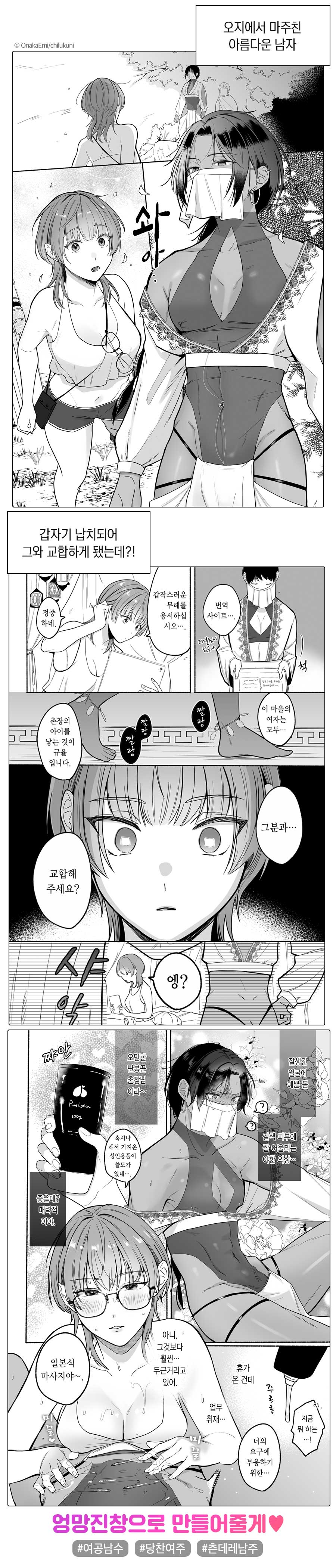 촌장이라는 남자는 자신의 위로 올라타라는 한마디뿐.