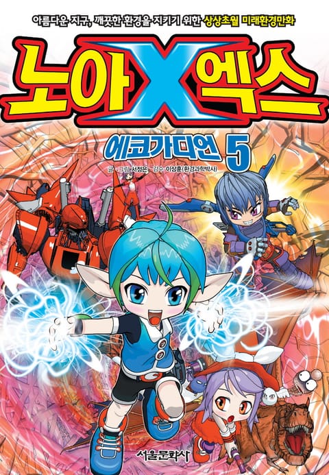 아름다운 지구, 깨끗한 환경을 지키기 위한 미래환경만화『노아엑스』. 이 책은 상상력 넘치는 스토리와 그림으로 자연스럽게 ‘환경’을 생각하게 하는 책이다. 환경의 중요성과 다양한 환경 관련 정보를 소개할 뿐 아니라, 친환경적인 생활 습관을 갖도록 도와준다. 서울특별시와 서울특별시교육청이 공동 제작한 초등 환경교과서 내용을 바탕으로 구성한 이 책은 국어, 수학, 사회, 과학별로 구성된 환경학습 주제에 따라 환경에 관한 흥미로운 사실을 전달한다.