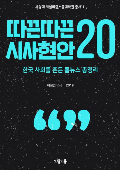 세명대 저널리즘스쿨대학원은 ‘정의롭고 실력 있는 언론인 육성’을 목표로 취재 제작 실무는 물론 시사현안, 인문사회 지식과 언론윤리 등을 깊이 있게 가르친다. 이 중 매학기 개설되는 ‘시사현안세미나’는 주요 사회 이슈를 매주 하나씩 선정, 토론을 통해 문제의 핵심과 찬반 논리를 파악하고 대안을 모색하는 수업이다. 학생들은 기사 스크랩과 관련 논문을 미리 읽어온 뒤 발제와 질의답변, 토론 등을 통해 종합적 사고력과 문제 해결 능력, 표현력 등을 키우게 된다. 이연주 등은 필자가 맡은 이 수업을 수강한 후, 2018년에 이어 2019년에도 우리 사회의 화두가 될 현안들을 추려 ‘따끈따끈 시사현안 20’을 묶어내기로 했다. 발제와 토론 내용을 중심으로, 가장 정확하고 심층적이면서 관점이 있는 ‘핵심 정리’를 만들기로 한 것이다.